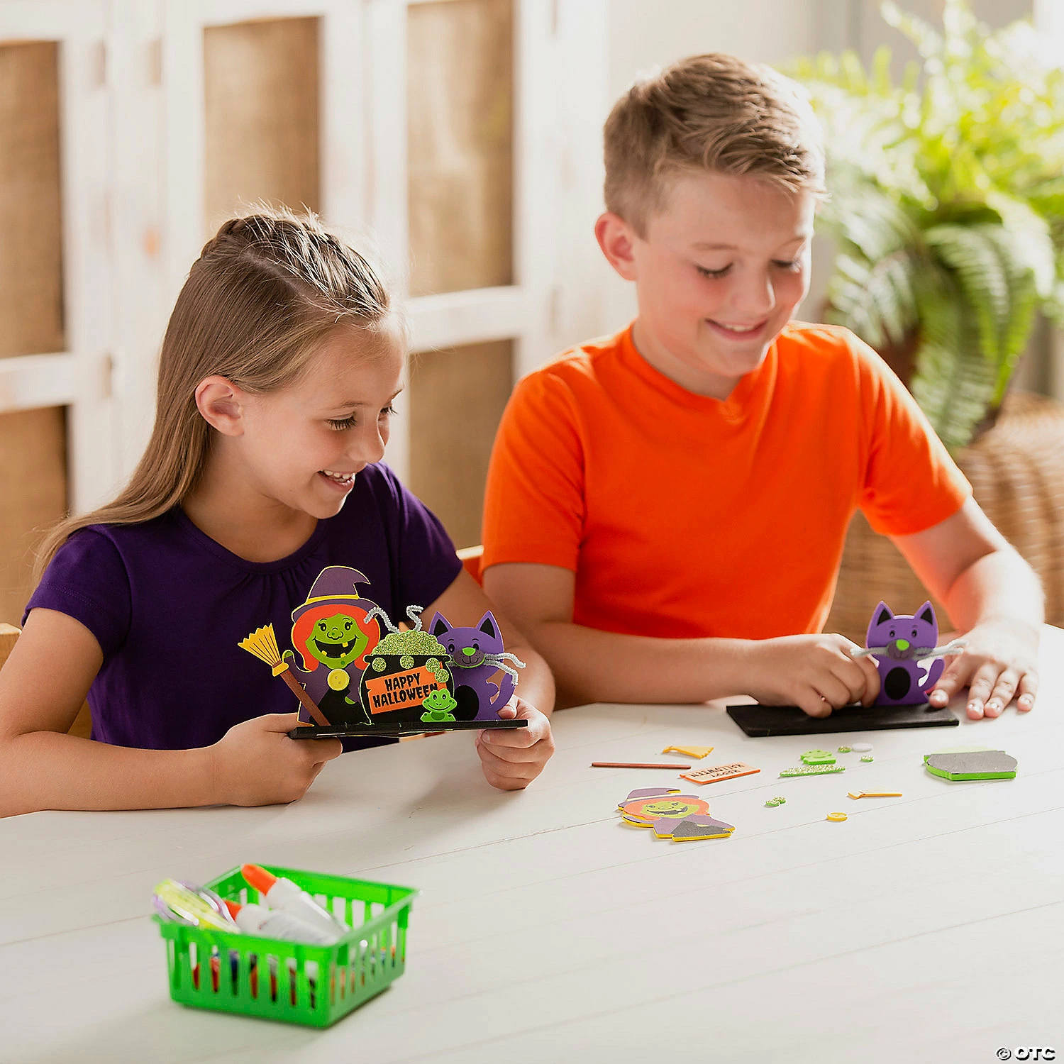 A โwitch craftโ is far different from โwitchcraftโ; our version is a cute Halloween craft featuring a smiling witch and her two friends standing next to a bubbling cauldron. This fun and simple Halloween craft has happy characters who arenโt too spooky for young kids. This 3D craft is a great choice for a classroom Halloween craft project that is simple to complete and easy to clean up afterward. Includes self-adhesive foam pieces, wooden craft sticks, plastic buttons and chenille stems. 6 1/2″ x 3″ x 4 3/4″ Makes 12. All craft kit pieces are pre-packaged for individual use. Kits include instructions. ยฉ OTC