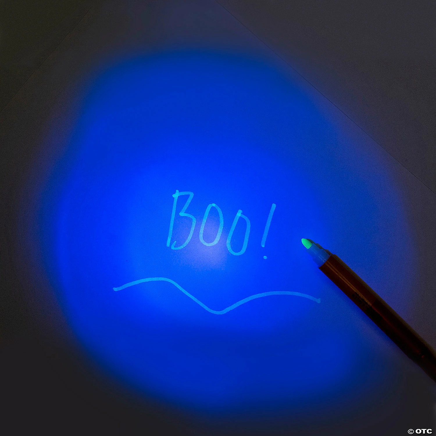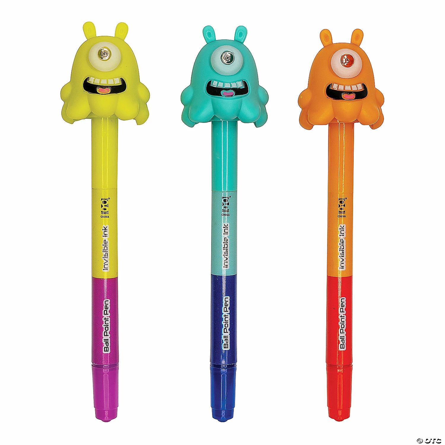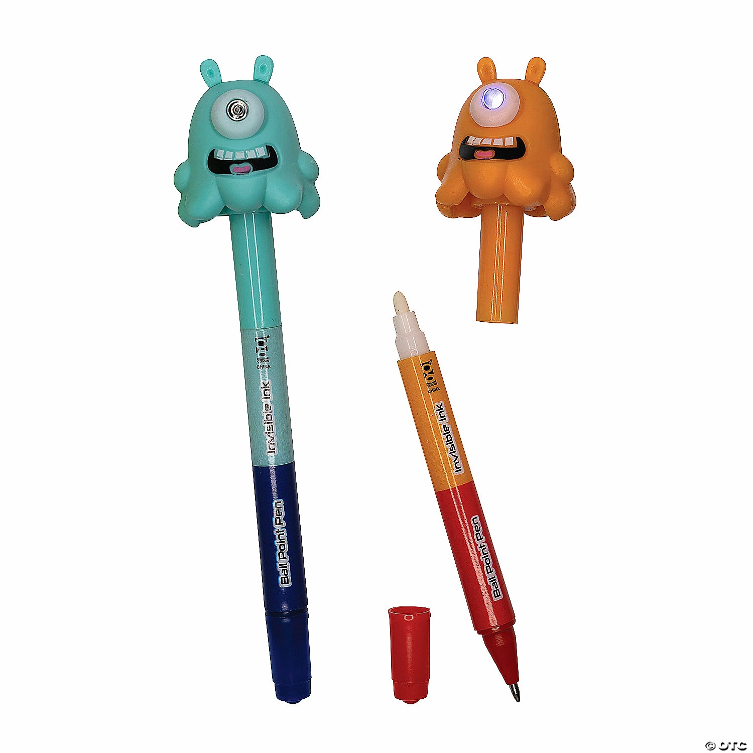 This pen is out of this world! It features invisible ink on one end and a normal ball-point pen on the other end. Kids will have extraterrestrial fun writing with this cool pen and choosing from three galactic colors. Press the back of the alien’s head and a small UV light will reveal the hidden, special message. Add this celestial stationery to your classroom supplies! Plastic. 6″ Black ink.
