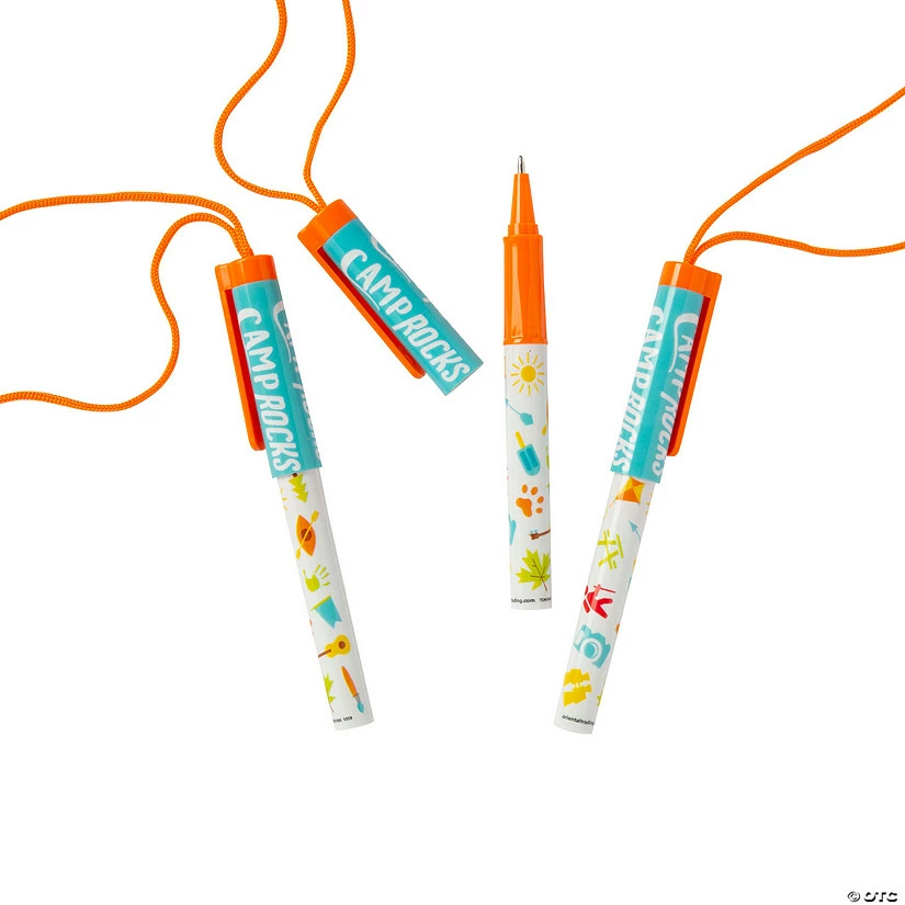 Camp rocks! A rockin’ party favor, giveaway or prize, these pens feature a fun design and come on a convenient rope. Kids can wear them as necklaces and use them to draw or write about their experience at summer camp or a fun birthday party! Black ink. Plastic. 5″ on a 30″ nylon cord. ยฉ OTC