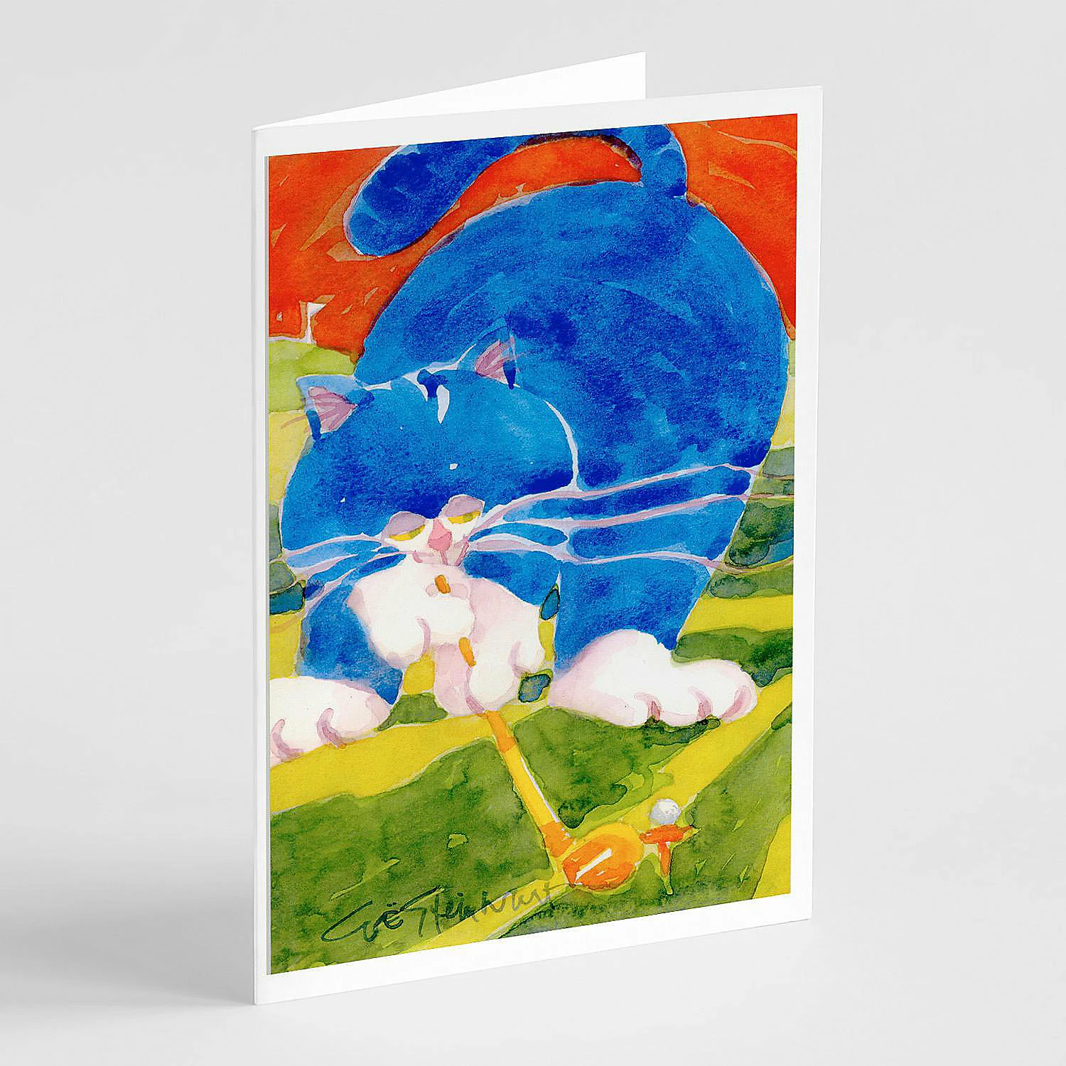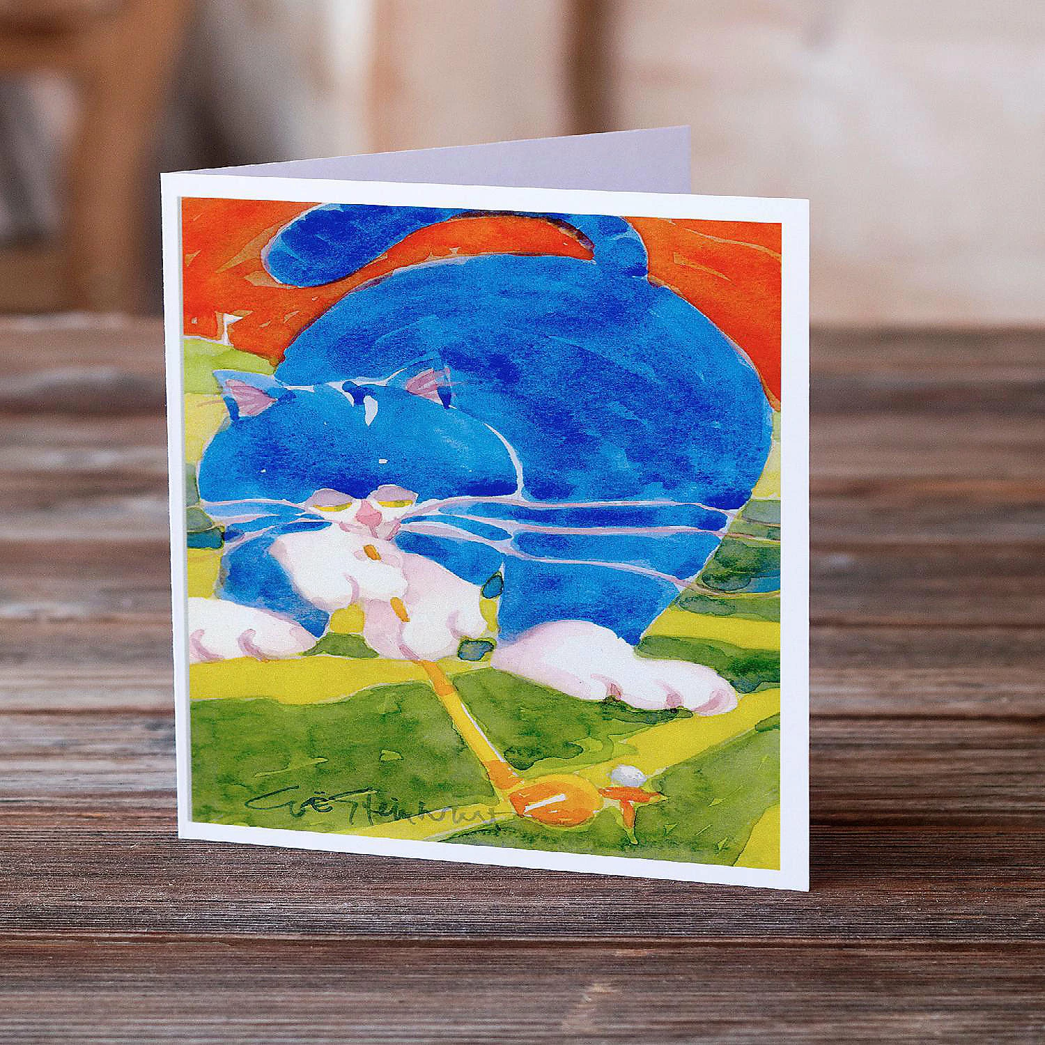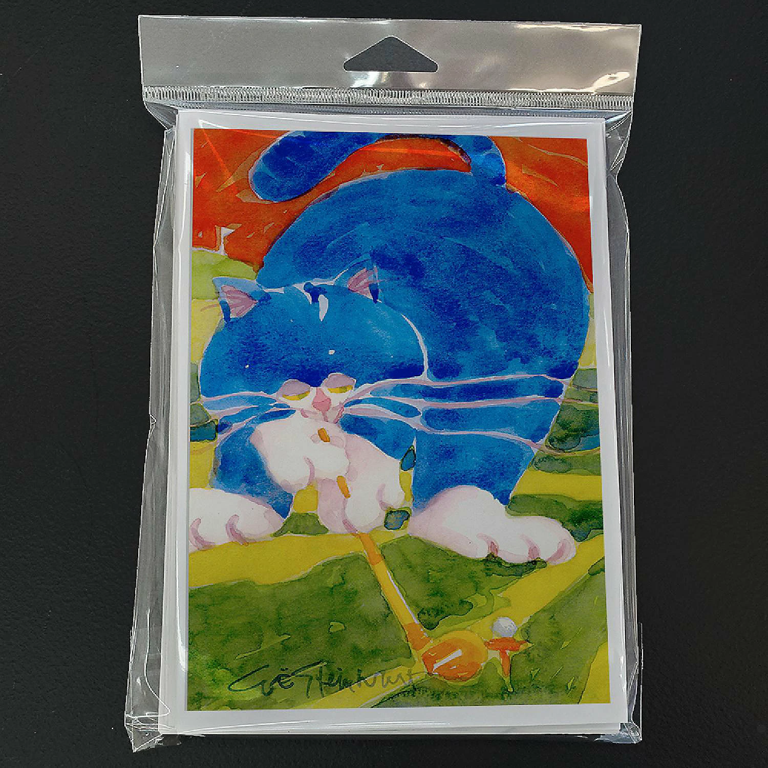 Big Blue the Cat Golfer Greeting Cards and Envelopes Pack of 8. Caroline’s Treasures Printed Greeting card Pack. This is a pack of eight folded 5×7 cards and eight matching white envelopes. These cards are blank inside for you to add your special note or special holiday greeting. The full color artwork cards are printed in our facility in full color on our 80 lb cover stock or 216 GSM. The super smooth finish of the white cards really enhance the artwork on the card. Each card comes with a matching white envelope. The artwork on the card was created by one of our in house creative artist or one of our licensed artists. This is from Caroline’s Treasures Cats category of products.