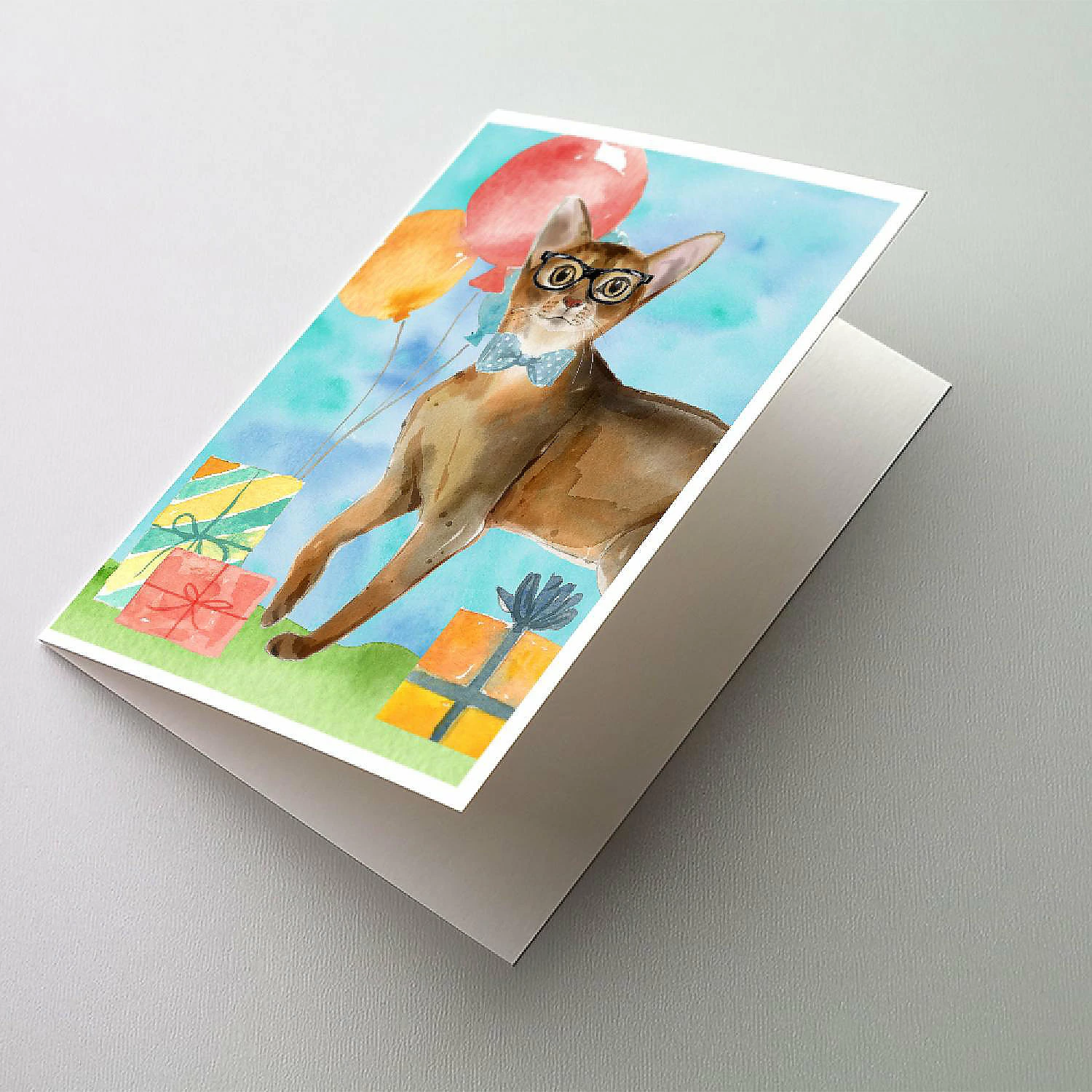 Abyssinian Happy Birthday Greeting Cards and Envelopes Pack of 8. Greeting Cards and Envelopes Pack of 8 featuring breed specific Abyssinian artwork. Celebrate Birthday with this Birthday . Caroline’s Treasures Printed Greeting card Pack. This is a pack of eight folded 5×7 cards and eight matching white envelopes. These cards are blank inside for you to add your special note or special holiday greeting. The full color artwork cards are printed in our facility in full color on our 80 lb cover stock or 216 GSM. The super smooth finish of the white cards really enhance the artwork on the card. Each card comes with a matching white envelope. The artwork on the card was created by one of our in house creative artist or one of our licensed artists. This is from Caroline’s Treasures Cats category of products.