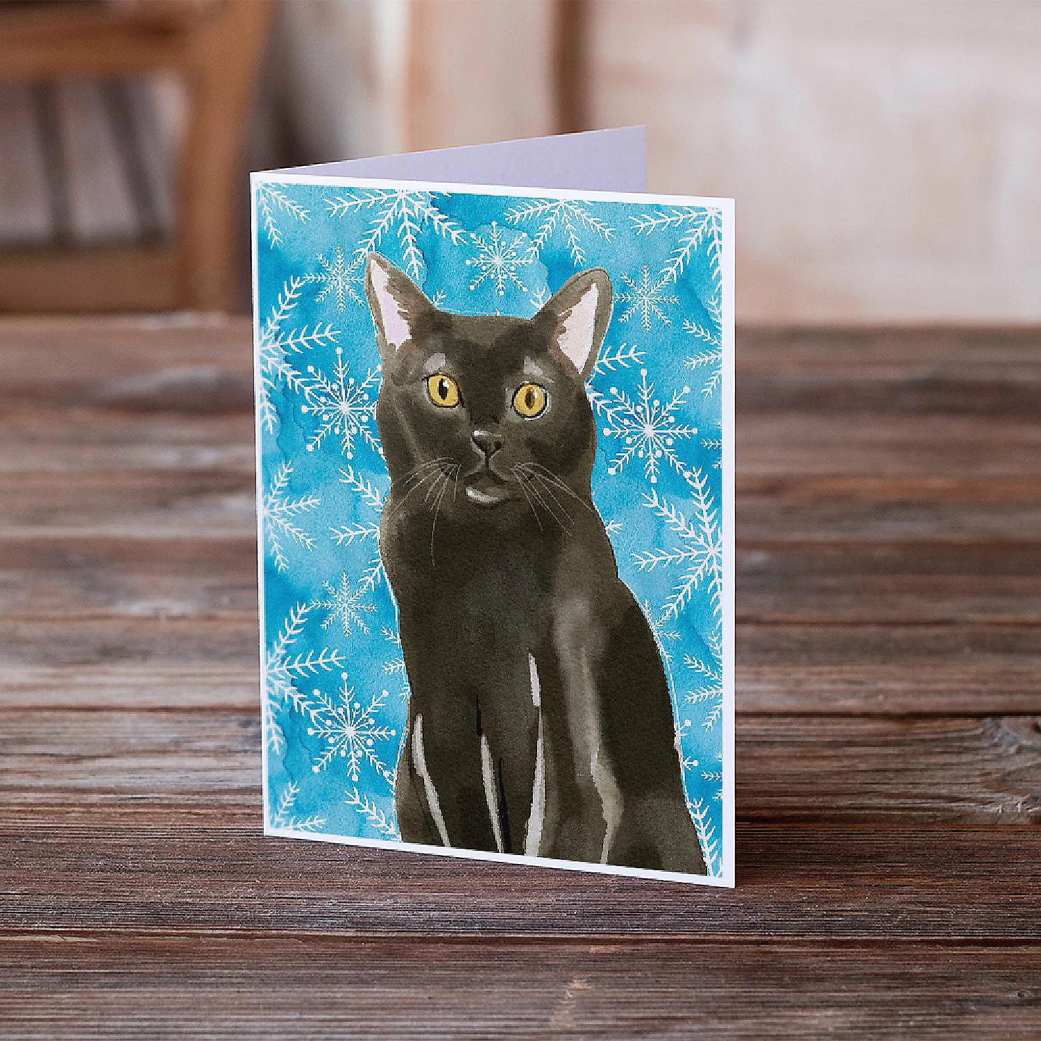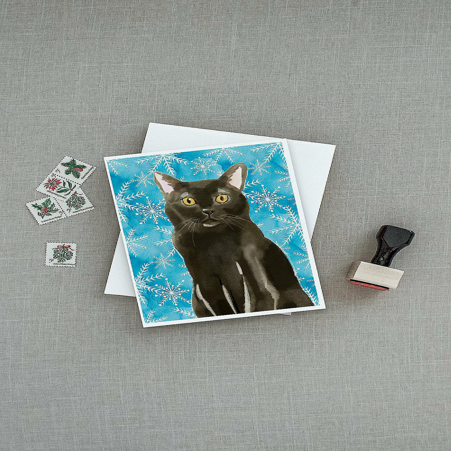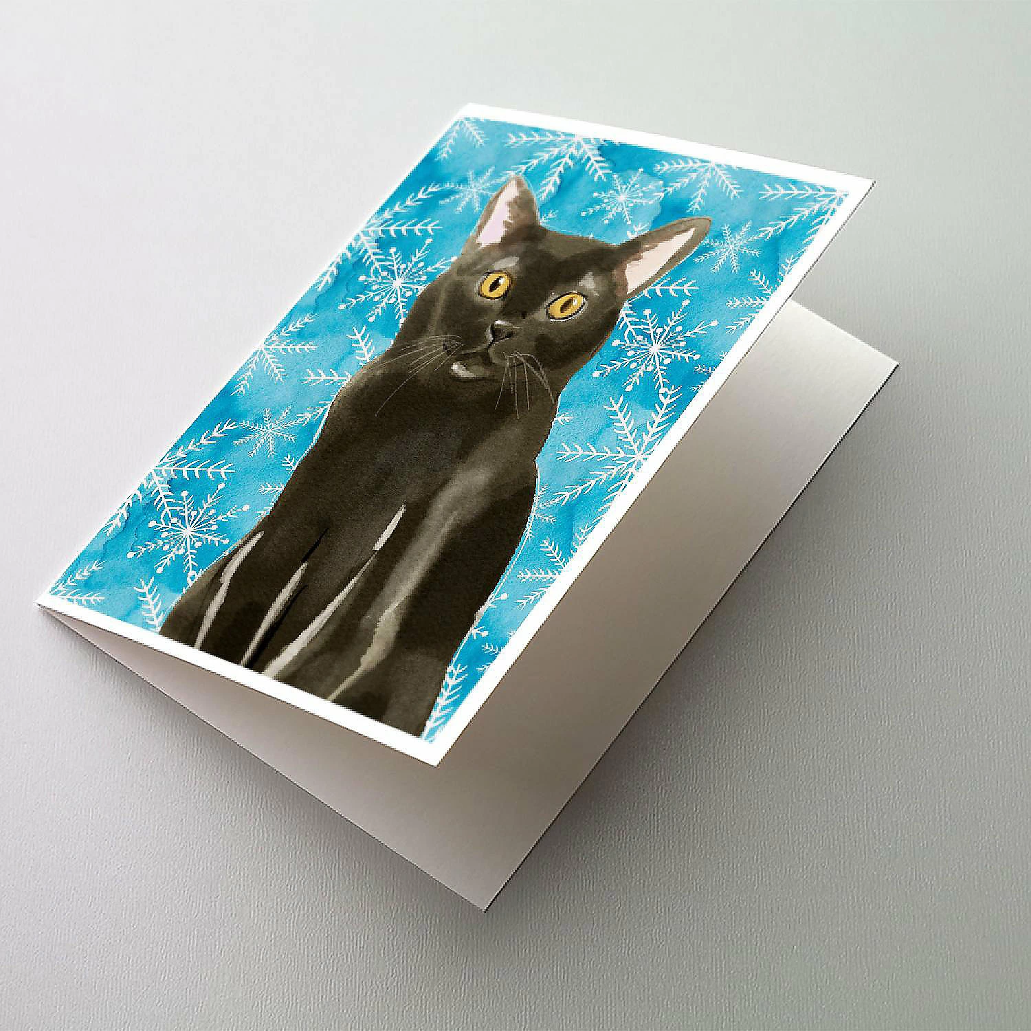 Bombay Winter Snowflakes Greeting Cards and Envelopes Pack of 8. Greeting Cards and Envelopes Pack of 8 featuring breed specific Bombay artwork. Caroline’s Treasures Printed Greeting card Pack. This is a pack of eight folded 5×7 cards and eight matching white envelopes. These cards are blank inside for you to add your special note or special holiday greeting. The full color artwork cards are printed in our facility in full color on our 80 lb cover stock or 216 GSM. The super smooth finish of the white cards really enhance the artwork on the card. Each card comes with a matching white envelope. The artwork on the card was created by one of our in house creative artist or one of our licensed artists. This is from Caroline’s Treasures Cats category of products.