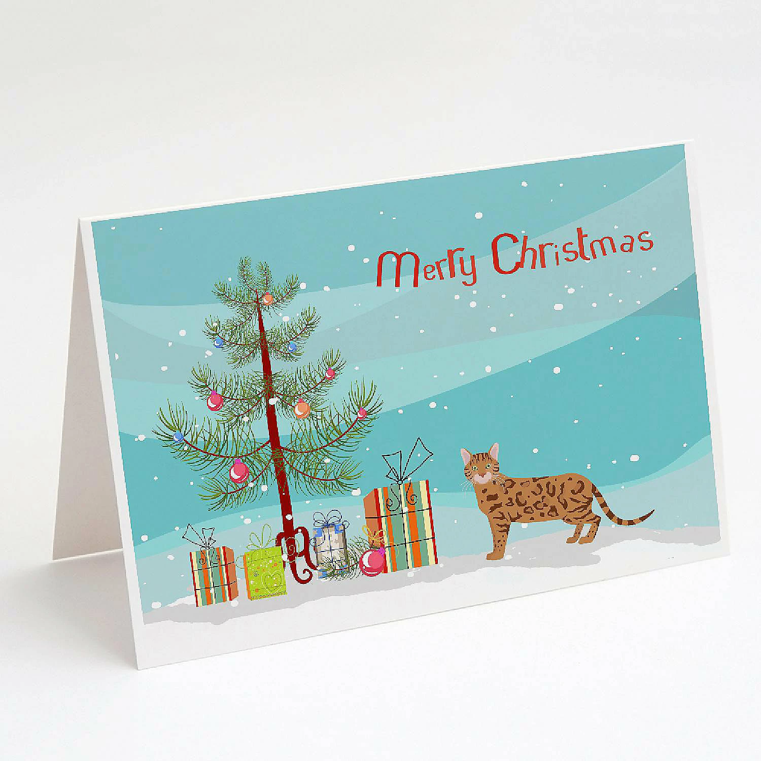Bengal #2 Cat Merry Christmas Greeting Cards and Envelopes Pack of 8. Greeting Cards and Envelopes Pack of 8 featuring breed specific Bengal artwork. Celebrate Christmas with this Christmas . Caroline’s Treasures Printed Greeting card Pack. This is a pack of eight folded 5×7 cards and eight matching white envelopes. These cards are blank inside for you to add your special note or special holiday greeting. The full color artwork cards are printed in our facility in full color on our 80 lb cover stock or 216 GSM. The super smooth finish of the white cards really enhance the artwork on the card. Each card comes with a matching white envelope. The artwork on the card was created by one of our in house creative artist or one of our licensed artists. This is from Caroline’s Treasures Cats category of products.