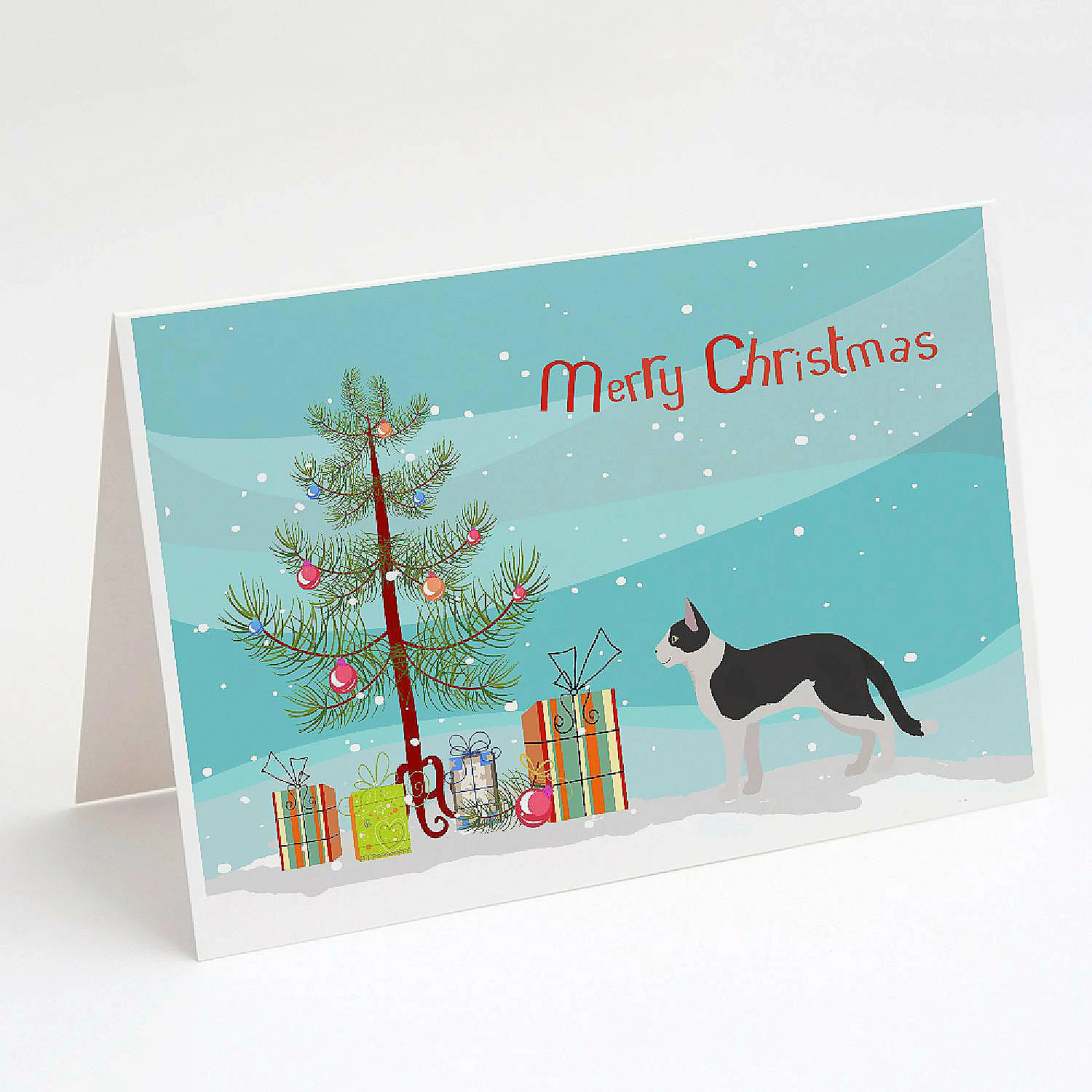Bicolour Aegean Cat Merry Christmas Greeting Cards and Envelopes Pack of 8. Greeting Cards and Envelopes Pack of 8 featuring breed specific Aegean artwork. Celebrate Christmas with this Christmas . Caroline’s Treasures Printed Greeting card Pack. This is a pack of eight folded 5×7 cards and eight matching white envelopes. These cards are blank inside for you to add your special note or special holiday greeting. The full color artwork cards are printed in our facility in full color on our 80 lb cover stock or 216 GSM. The super smooth finish of the white cards really enhance the artwork on the card. Each card comes with a matching white envelope. The artwork on the card was created by one of our in house creative artist or one of our licensed artists. This is from Caroline’s Treasures Cats category of products.