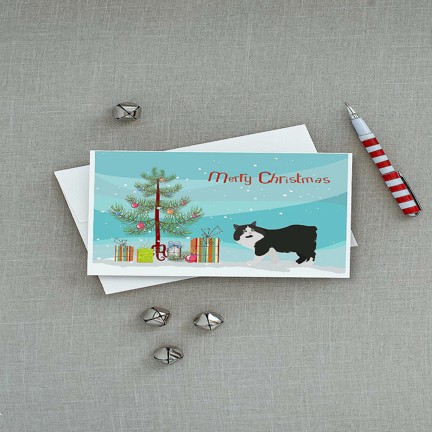 Cymric Cat Merry Christmas Greeting Cards and Envelopes Pack of 8. Greeting Cards and Envelopes Pack of 8 featuring breed specific Cymric artwork. Celebrate Christmas with this Christmas . Caroline’s Treasures Printed Greeting card Pack. This is a pack of eight folded 5×7 cards and eight matching white envelopes. These cards are blank inside for you to add your special note or special holiday greeting. The full color artwork cards are printed in our facility in full color on our 80 lb cover stock or 216 GSM. The super smooth finish of the white cards really enhance the artwork on the card. Each card comes with a matching white envelope. The artwork on the card was created by one of our in house creative artist or one of our licensed artists. This is from Caroline’s Treasures Cats category of products.