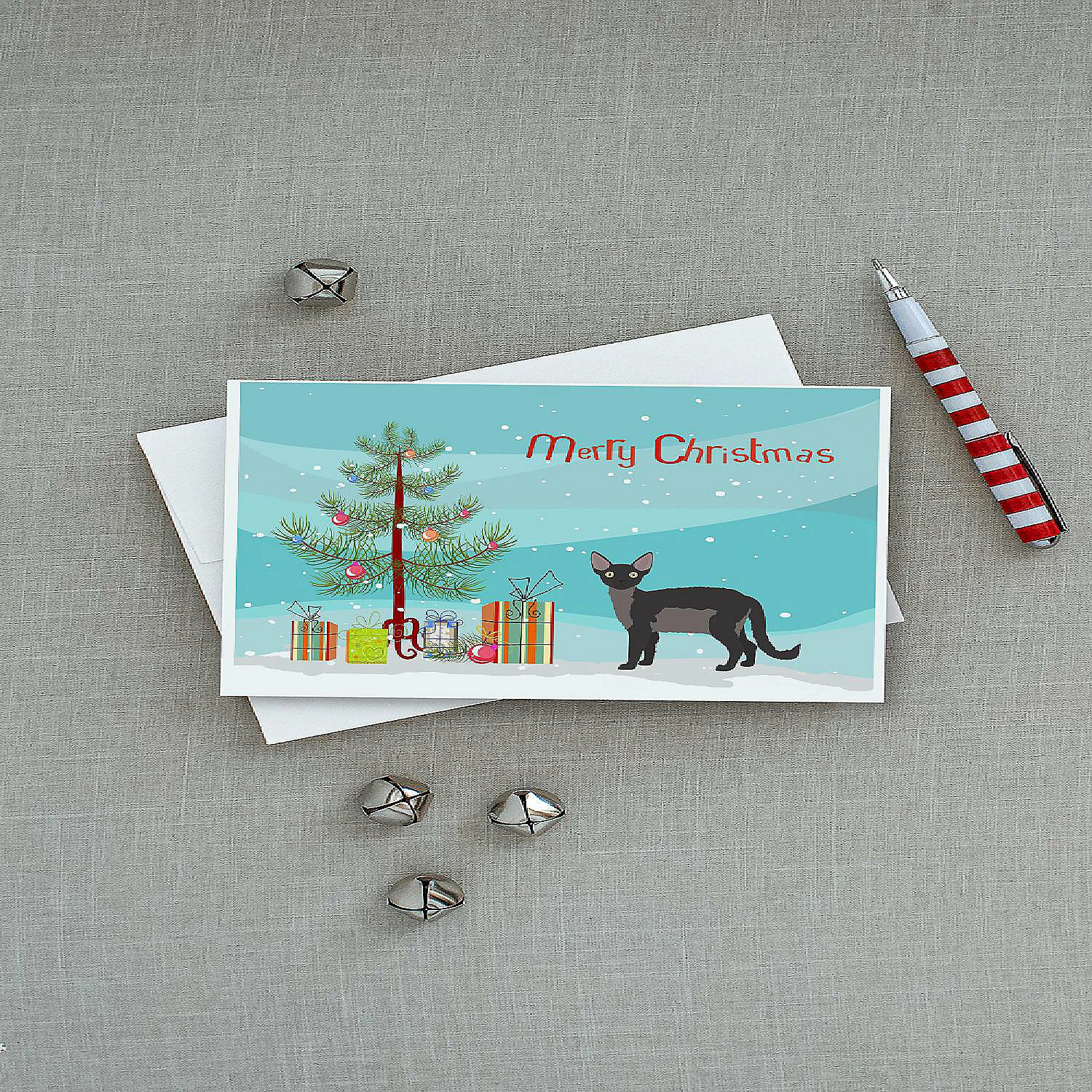 Devon Rex Cat Merry Christmas Greeting Cards and Envelopes Pack of 8. Greeting Cards and Envelopes Pack of 8 featuring breed specific Devon Rex artwork. Celebrate Christmas with this Christmas . Caroline’s Treasures Printed Greeting card Pack. This is a pack of eight folded 5×7 cards and eight matching white envelopes. These cards are blank inside for you to add your special note or special holiday greeting. The full color artwork cards are printed in our facility in full color on our 80 lb cover stock or 216 GSM. The super smooth finish of the white cards really enhance the artwork on the card. Each card comes with a matching white envelope. The artwork on the card was created by one of our in house creative artist or one of our licensed artists. This is from Caroline’s Treasures Cats category of products.