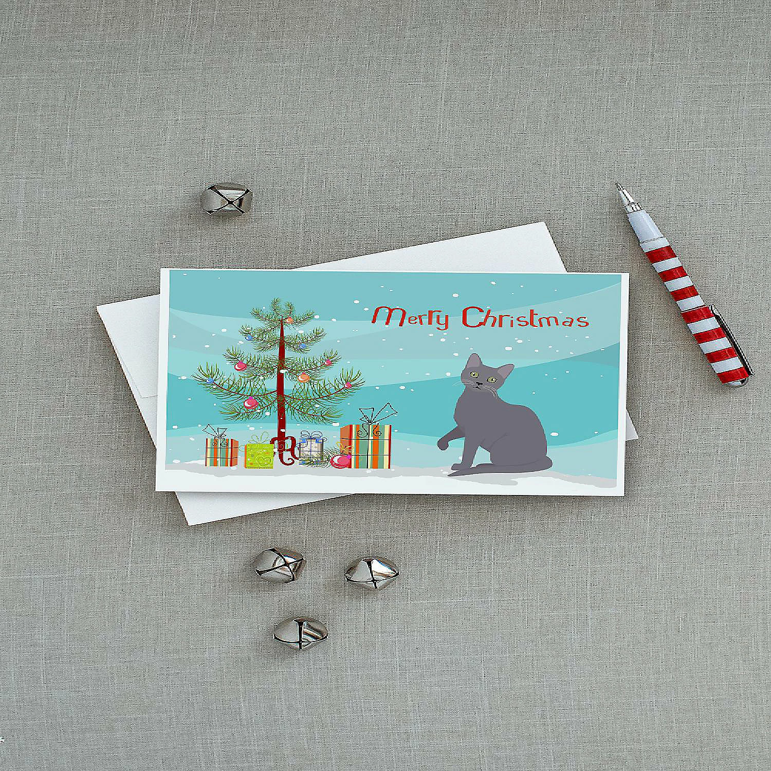 Korat Cat Merry Christmas Greeting Cards and Envelopes Pack of 8. Greeting Cards and Envelopes Pack of 8 featuring breed specific Korat artwork. Celebrate Christmas with this Christmas . Caroline’s Treasures Printed Greeting card Pack. This is a pack of eight folded 5×7 cards and eight matching white envelopes. These cards are blank inside for you to add your special note or special holiday greeting. The full color artwork cards are printed in our facility in full color on our 80 lb cover stock or 216 GSM. The super smooth finish of the white cards really enhance the artwork on the card. Each card comes with a matching white envelope. The artwork on the card was created by one of our in house creative artist or one of our licensed artists. This is from Caroline’s Treasures Cats category of products.