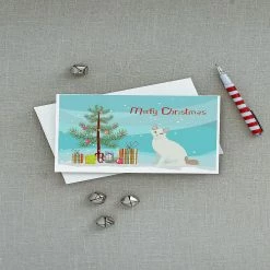 Korean Bobtail Cat Merry Christmas Greeting Cards and Envelopes Pack of 8. Greeting Cards and Envelopes Pack of 8 featuring breed specific Korean Bobtail artwork. Celebrate Christmas with this Christmas . Caroline’s Treasures Printed Greeting card Pack. This is a pack of eight folded 5×7 cards and eight matching white envelopes. These cards are blank inside for you to add your special note or special holiday greeting. The full color artwork cards are printed in our facility in full color on our 80 lb cover stock or 216 GSM. The super smooth finish of the white cards really enhance the artwork on the card. Each card comes with a matching white envelope. The artwork on the card was created by one of our in house creative artist or one of our licensed artists. This is from Caroline’s Treasures Cats category of products.