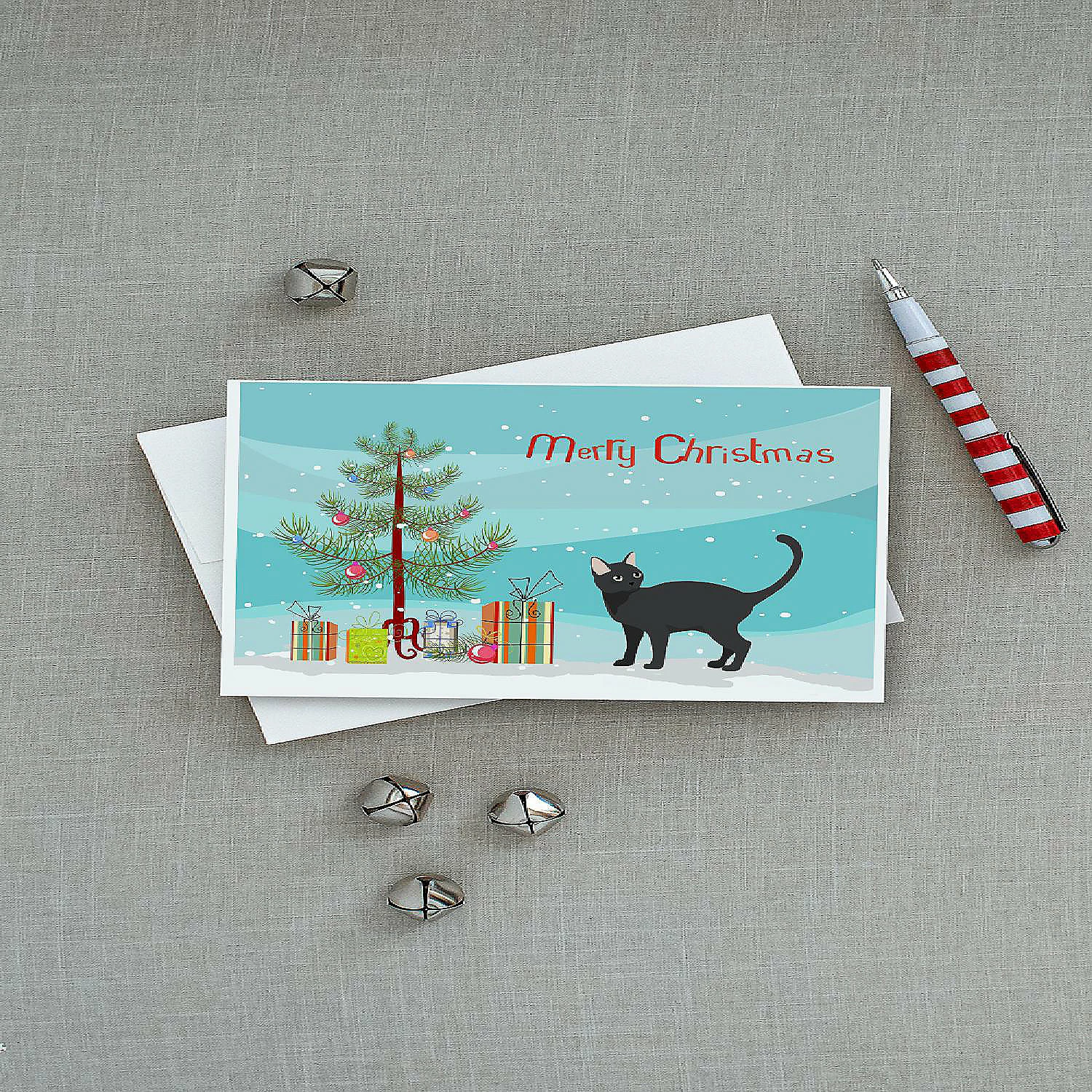 Malayan #2 Cat Merry Christmas Greeting Cards and Envelopes Pack of 8. Greeting Cards and Envelopes Pack of 8 featuring breed specific Malayan artwork. Celebrate Christmas with this Christmas . Caroline’s Treasures Printed Greeting card Pack. This is a pack of eight folded 5×7 cards and eight matching white envelopes. These cards are blank inside for you to add your special note or special holiday greeting. The full color artwork cards are printed in our facility in full color on our 80 lb cover stock or 216 GSM. The super smooth finish of the white cards really enhance the artwork on the card. Each card comes with a matching white envelope. The artwork on the card was created by one of our in house creative artist or one of our licensed artists. This is from Caroline’s Treasures Cats category of products.