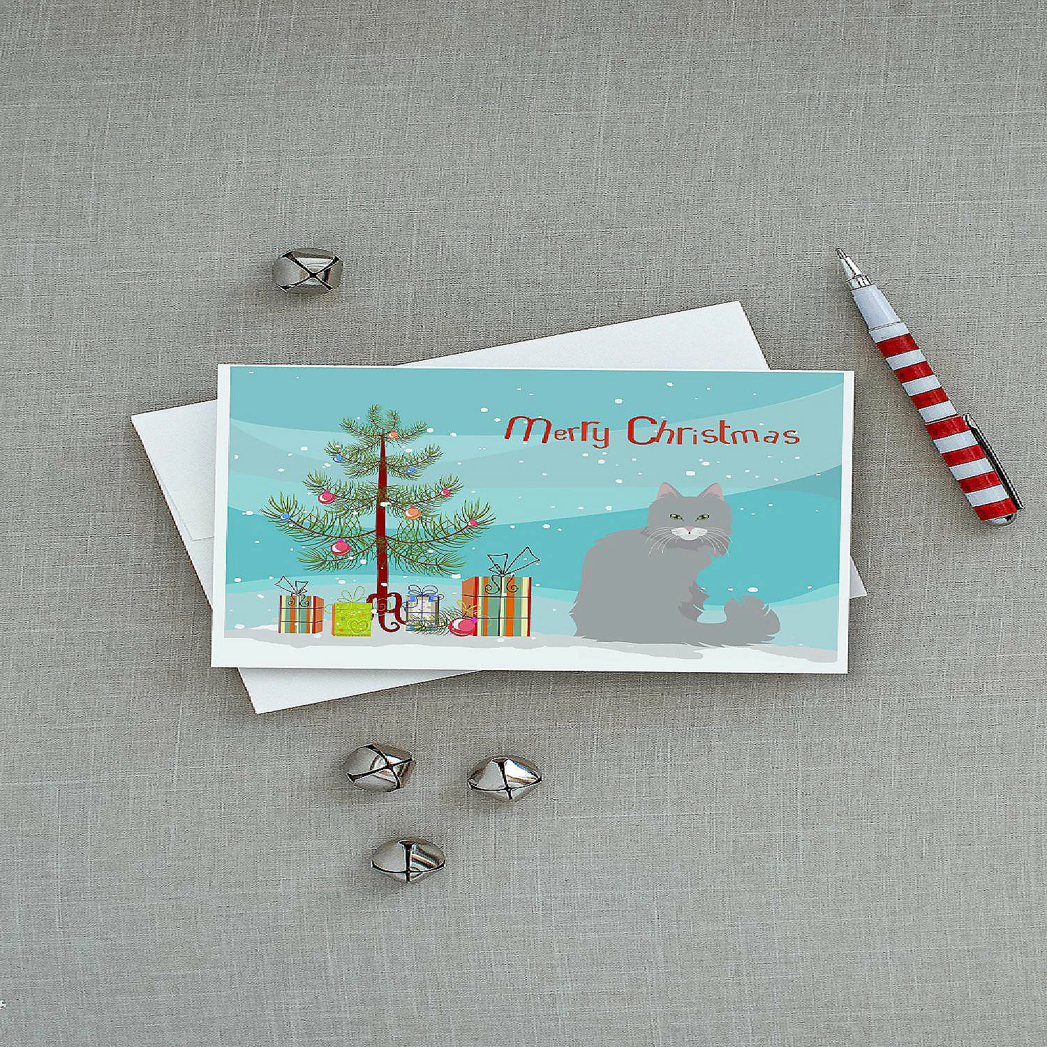 Norwegian Forest Cat Merry Christmas Greeting Cards and Envelopes Pack of 8. Greeting Cards and Envelopes Pack of 8 featuring breed specific Norwegian Forest artwork. Celebrate Christmas with this Christmas . Caroline’s Treasures Printed Greeting card Pack. This is a pack of eight folded 5×7 cards and eight matching white envelopes. These cards are blank inside for you to add your special note or special holiday greeting. The full color artwork cards are printed in our facility in full color on our 80 lb cover stock or 216 GSM. The super smooth finish of the white cards really enhance the artwork on the card. Each card comes with a matching white envelope. The artwork on the card was created by one of our in house creative artist or one of our licensed artists. This is from Caroline’s Treasures Cats category of products.