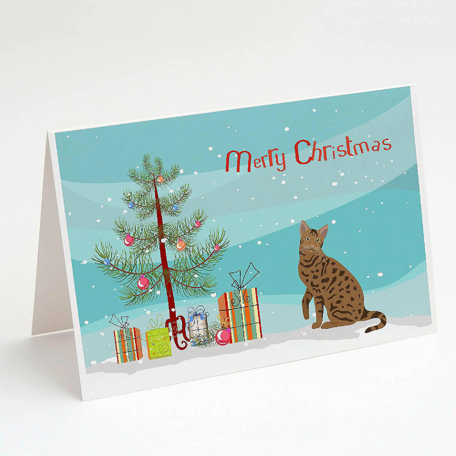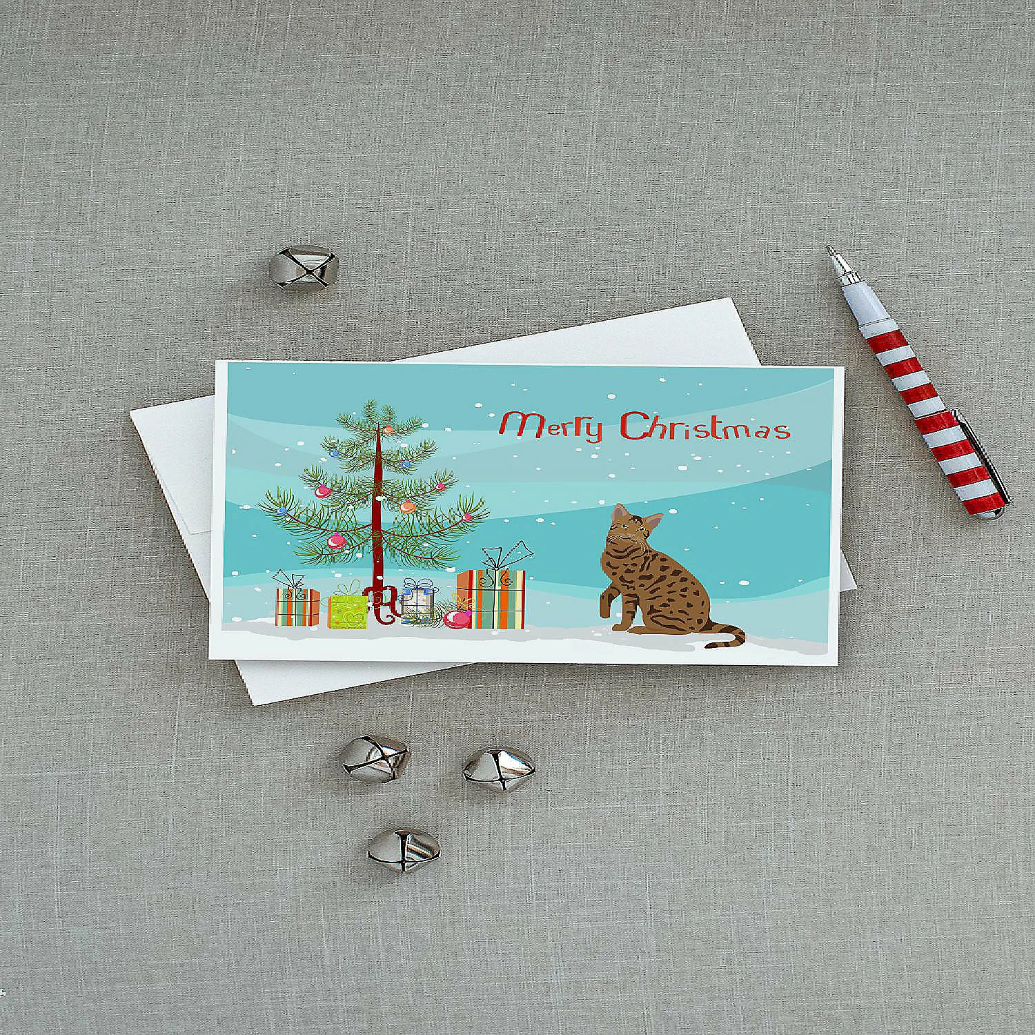 Ocicat #2 Cat Merry Christmas Greeting Cards and Envelopes Pack of 8. Greeting Cards and Envelopes Pack of 8 featuring breed specific Ocicat artwork. Celebrate Christmas with this Christmas . Caroline’s Treasures Printed Greeting card Pack. This is a pack of eight folded 5×7 cards and eight matching white envelopes. These cards are blank inside for you to add your special note or special holiday greeting. The full color artwork cards are printed in our facility in full color on our 80 lb cover stock or 216 GSM. The super smooth finish of the white cards really enhance the artwork on the card. Each card comes with a matching white envelope. The artwork on the card was created by one of our in house creative artist or one of our licensed artists. This is from Caroline’s Treasures Cats category of products.