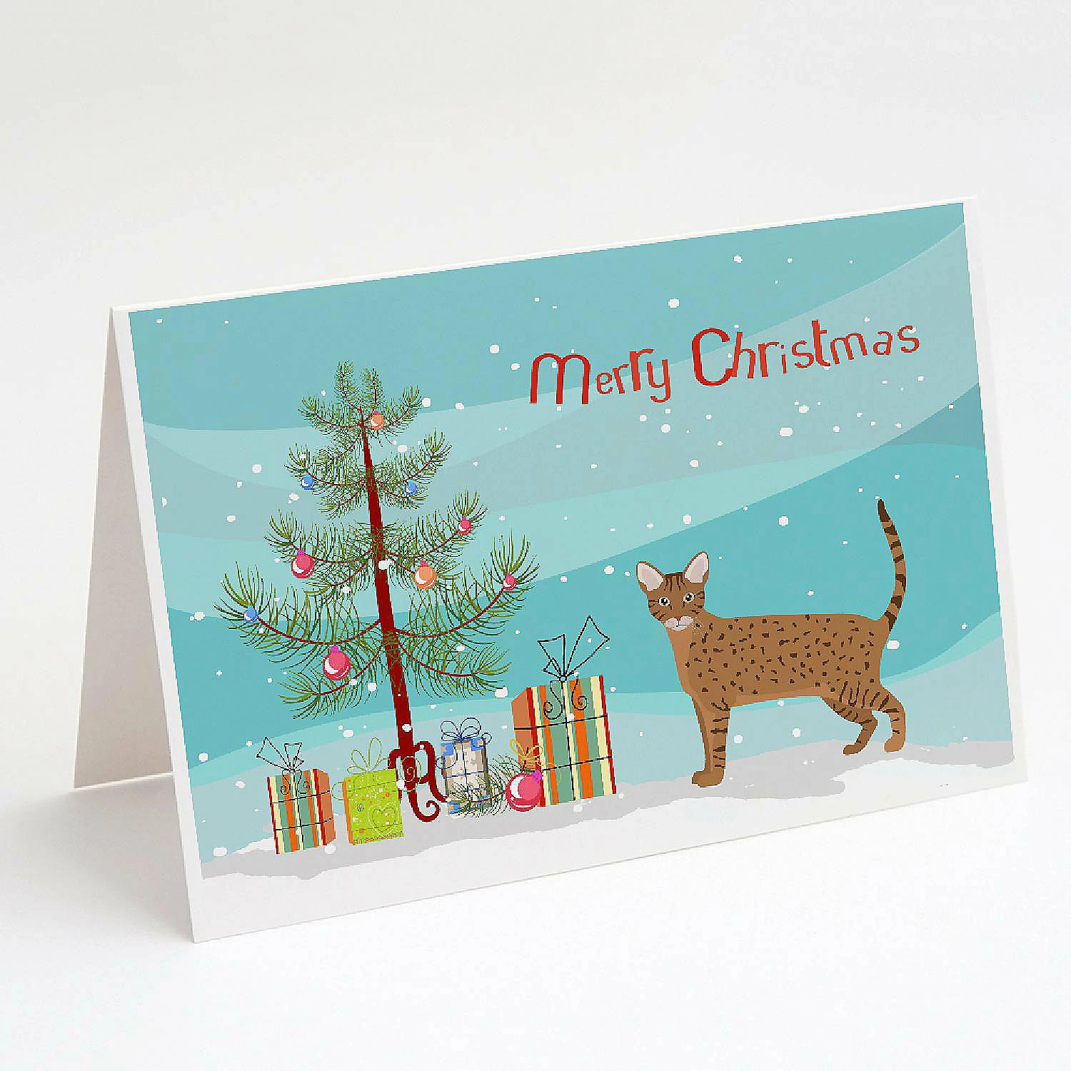 Ocicat Cat Merry Christmas Greeting Cards and Envelopes Pack of 8. Greeting Cards and Envelopes Pack of 8 featuring breed specific Ocicat artwork. Celebrate Christmas with this Christmas . Caroline’s Treasures Printed Greeting card Pack. This is a pack of eight folded 5×7 cards and eight matching white envelopes. These cards are blank inside for you to add your special note or special holiday greeting. The full color artwork cards are printed in our facility in full color on our 80 lb cover stock or 216 GSM. The super smooth finish of the white cards really enhance the artwork on the card. Each card comes with a matching white envelope. The artwork on the card was created by one of our in house creative artist or one of our licensed artists. This is from Caroline’s Treasures Cats category of products.