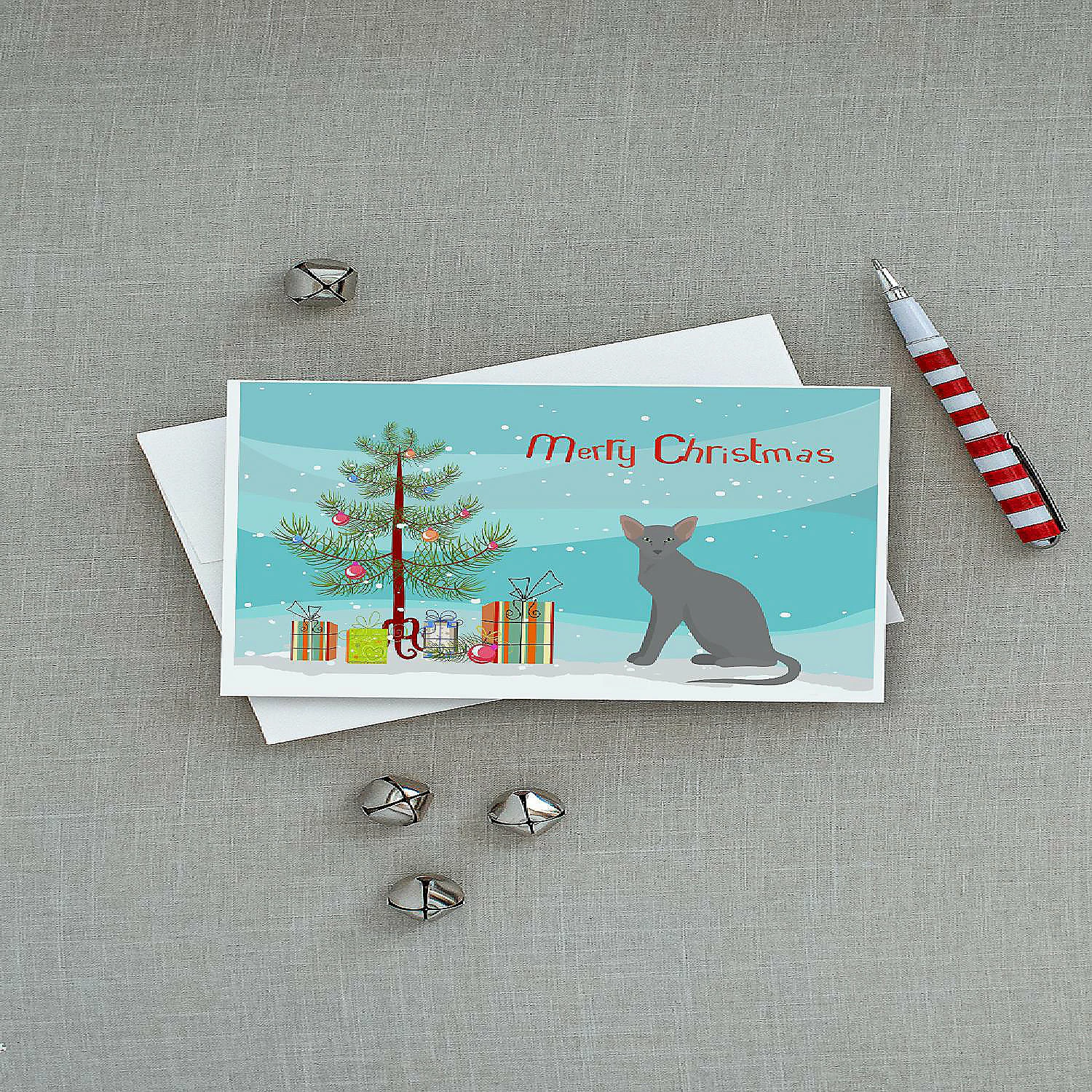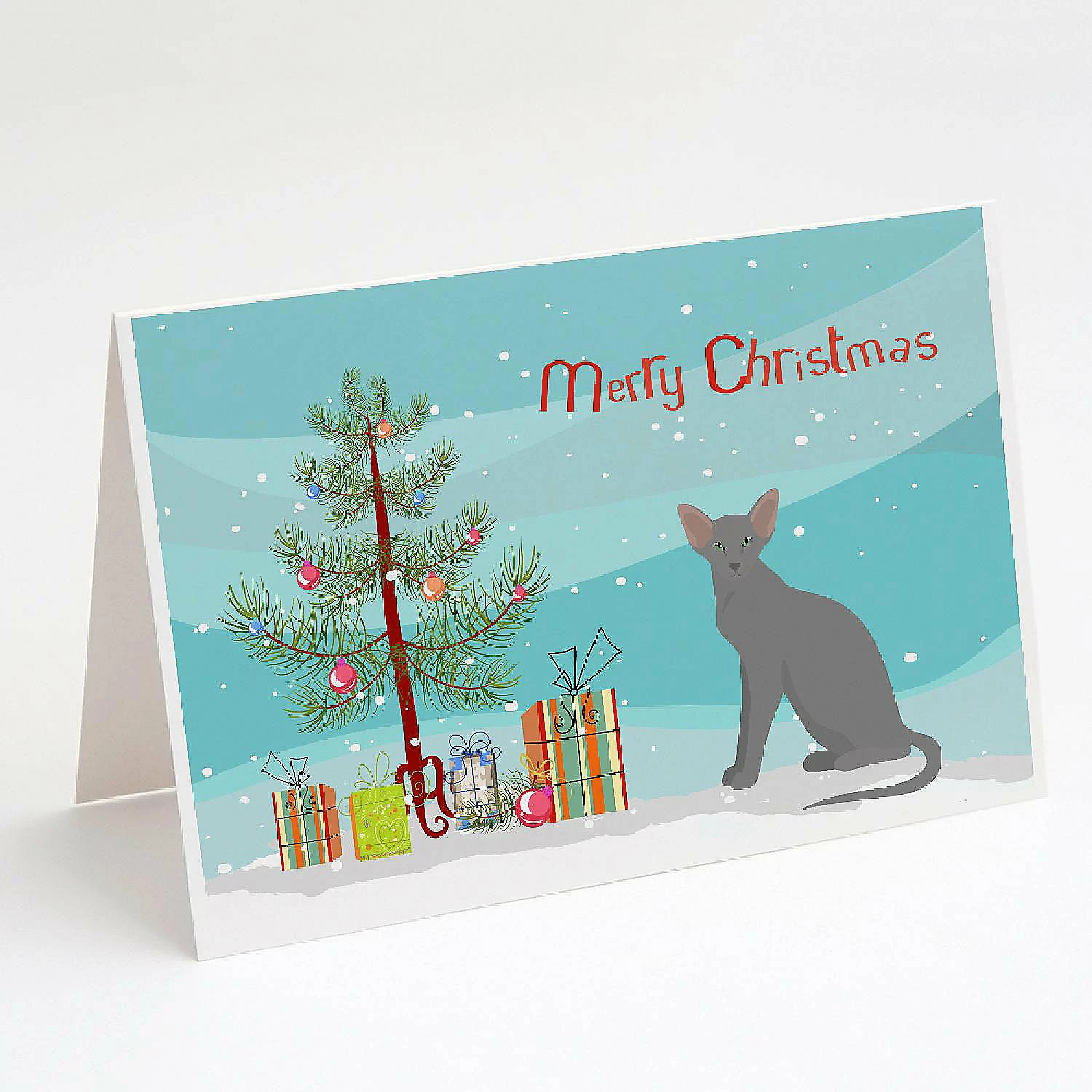 Oriental Shorthair Cat Merry Christmas Greeting Cards and Envelopes Pack of 8. Greeting Cards and Envelopes Pack of 8 featuring breed specific Oriental Shorthair artwork. Celebrate Christmas with this Christmas . Caroline’s Treasures Printed Greeting card Pack. This is a pack of eight folded 5×7 cards and eight matching white envelopes. These cards are blank inside for you to add your special note or special holiday greeting. The full color artwork cards are printed in our facility in full color on our 80 lb cover stock or 216 GSM. The super smooth finish of the white cards really enhance the artwork on the card. Each card comes with a matching white envelope. The artwork on the card was created by one of our in house creative artist or one of our licensed artists. This is from Caroline’s Treasures Cats category of products.