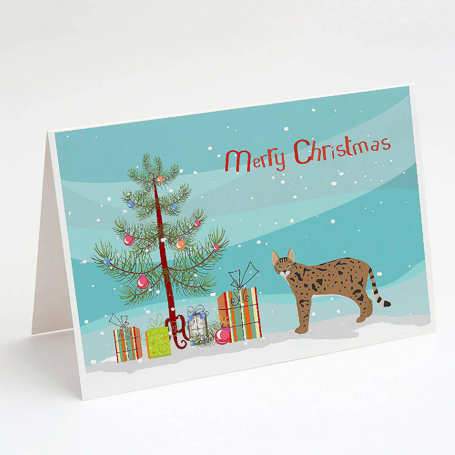 Savannah #1 Cat Merry Christmas Greeting Cards and Envelopes Pack of 8. Greeting Cards and Envelopes Pack of 8 featuring breed specific Savannah artwork. Celebrate Christmas with this Christmas . Caroline’s Treasures Printed Greeting card Pack. This is a pack of eight folded 5×7 cards and eight matching white envelopes. These cards are blank inside for you to add your special note or special holiday greeting. The full color artwork cards are printed in our facility in full color on our 80 lb cover stock or 216 GSM. The super smooth finish of the white cards really enhance the artwork on the card. Each card comes with a matching white envelope. The artwork on the card was created by one of our in house creative artist or one of our licensed artists. This is from Caroline’s Treasures Cats category of products.