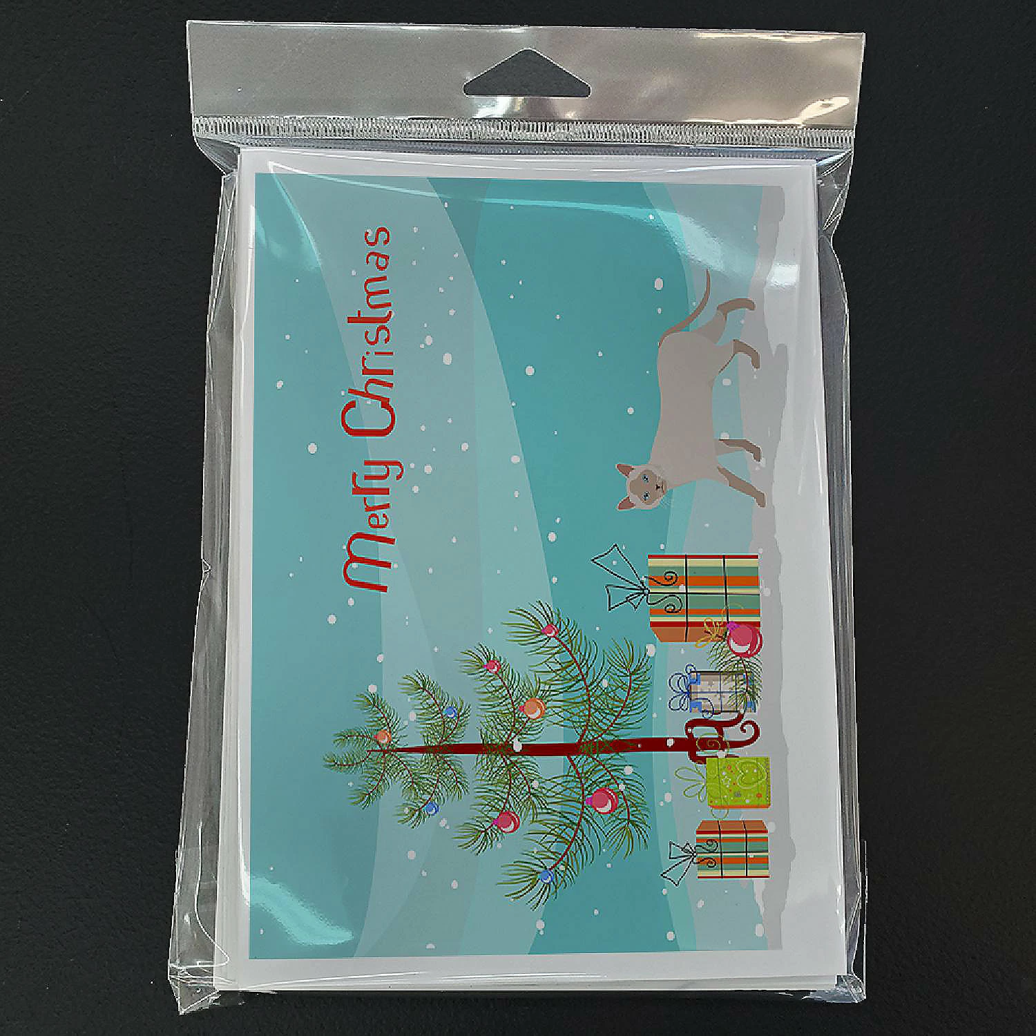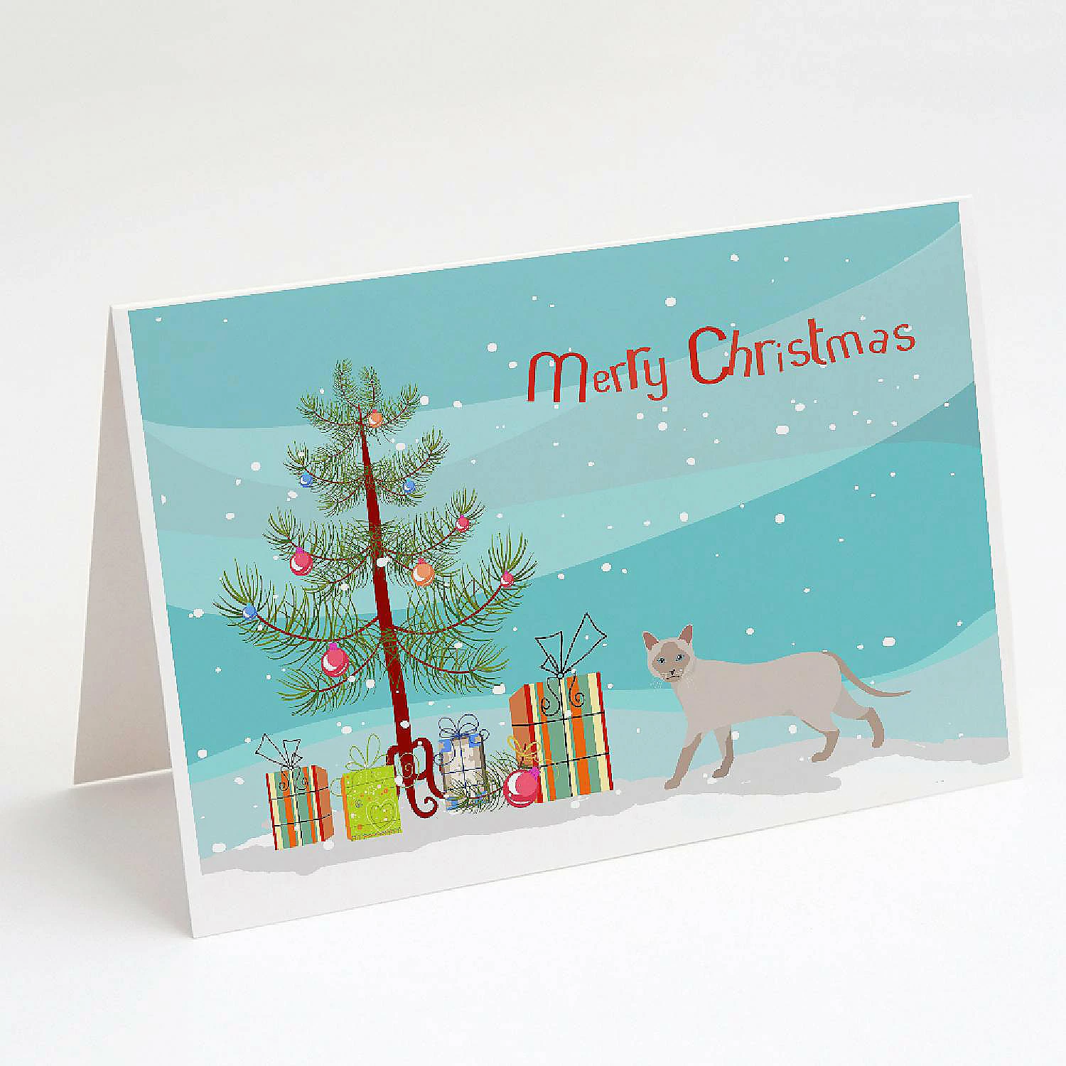 Thai Lilac Cat Merry Christmas Greeting Cards and Envelopes Pack of 8. Greeting Cards and Envelopes Pack of 8 featuring breed specific Thai Lilac artwork. Celebrate Christmas with this Christmas . Caroline’s Treasures Printed Greeting card Pack. This is a pack of eight folded 5×7 cards and eight matching white envelopes. These cards are blank inside for you to add your special note or special holiday greeting. The full color artwork cards are printed in our facility in full color on our 80 lb cover stock or 216 GSM. The super smooth finish of the white cards really enhance the artwork on the card. Each card comes with a matching white envelope. The artwork on the card was created by one of our in house creative artist or one of our licensed artists. This is from Caroline’s Treasures Cats category of products.