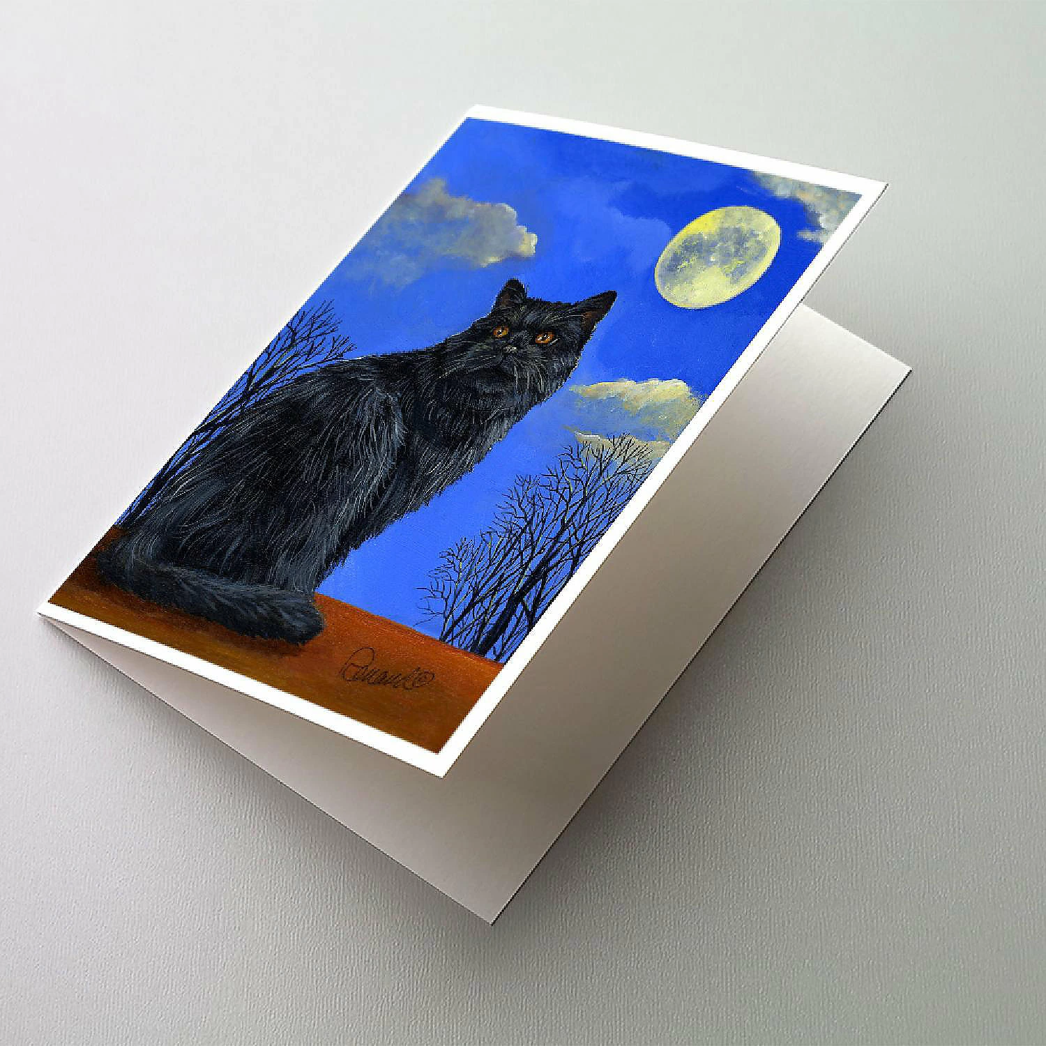 Black Cat Hocus Pocus Halloween Greeting Cards and Envelopes Pack of 8. Greeting Cards and Envelopes Pack of 8 featuring breed specific Cats artwork. Celebrate Halloween with this Halloween . Caroline’s Treasures Printed Greeting card Pack. This is a pack of eight folded 5×7 cards and eight matching white envelopes. These cards are blank inside for you to add your special note or special holiday greeting. The full color artwork cards are printed in our facility in full color on our 80 lb cover stock or 216 GSM. The super smooth finish of the white cards really enhance the artwork on the card. Each card comes with a matching white envelope. The artwork on the card was created by one of our in house creative artist or one of our licensed artists. This is from Caroline’s Treasures Cats category of products.