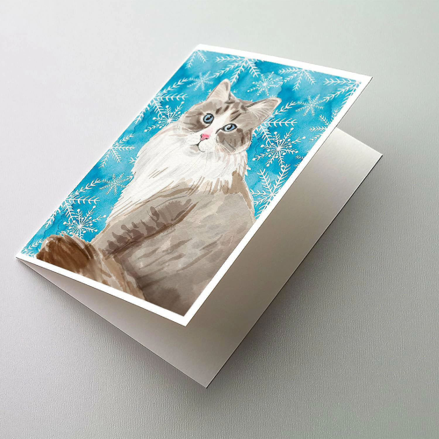Siberian Winter Snowflakes Greeting Cards and Envelopes Pack of 8. Greeting Cards and Envelopes Pack of 8 featuring breed specific Siberian artwork. Caroline’s Treasures Printed Greeting card Pack. This is a pack of eight folded 5×7 cards and eight matching white envelopes. These cards are blank inside for you to add your special note or special holiday greeting. The full color artwork cards are printed in our facility in full color on our 80 lb cover stock or 216 GSM. The super smooth finish of the white cards really enhance the artwork on the card. Each card comes with a matching white envelope. The artwork on the card was created by one of our in house creative artist or one of our licensed artists. This is from Caroline’s Treasures Cats category of products.