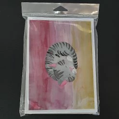 Sleeping Grey Cat Watercolor Greeting Cards and Envelopes Pack of 8. Caroline’s Treasures Printed Greeting card Pack. This is a pack of eight folded 5×7 cards and eight matching white envelopes. These cards are blank inside for you to add your special note or special holiday greeting. The full color artwork cards are printed in our facility in full color on our 80 lb cover stock or 216 GSM. The super smooth finish of the white cards really enhance the artwork on the card. Each card comes with a matching white envelope. The artwork on the card was created by one of our in house creative artist or one of our licensed artists. This is from Caroline’s Treasures Cats category of products.