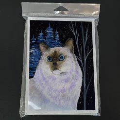 Starry Night Cat – Birman Greeting Cards and Envelopes Pack of 8. Greeting Cards and Envelopes Pack of 8 featuring breed specific Birman artwork. Caroline’s Treasures Printed Greeting card Pack. This is a pack of eight folded 5×7 cards and eight matching white envelopes. These cards are blank inside for you to add your special note or special holiday greeting. The full color artwork cards are printed in our facility in full color on our 80 lb cover stock or 216 GSM. The super smooth finish of the white cards really enhance the artwork on the card. Each card comes with a matching white envelope. The artwork on the card was created by one of our in house creative artist or one of our licensed artists. This is from Caroline’s Treasures Cats category of products.