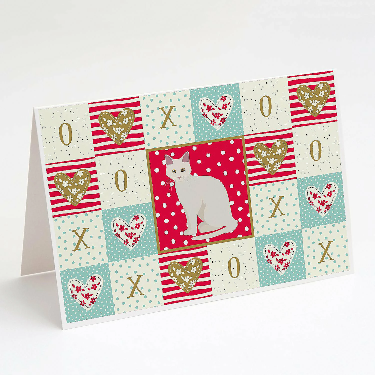 Aphrodite Giant Cat Love Greeting Cards and Envelopes Pack of 8. Greeting Cards and Envelopes Pack of 8 featuring breed specific Aphrodite Giant artwork. Celebrate Valentine’s Day with this Valentine’s Day . Caroline’s Treasures Printed Greeting card Pack. This is a pack of eight folded 5×7 cards and eight matching white envelopes. These cards are blank inside for you to add your special note or special holiday greeting. The full color artwork cards are printed in our facility in full color on our 80 lb cover stock or 216 GSM. The super smooth finish of the white cards really enhance the artwork on the card. Each card comes with a matching white envelope. The artwork on the card was created by one of our in house creative artist or one of our licensed artists. This is from Caroline’s Treasures Cats category of products.