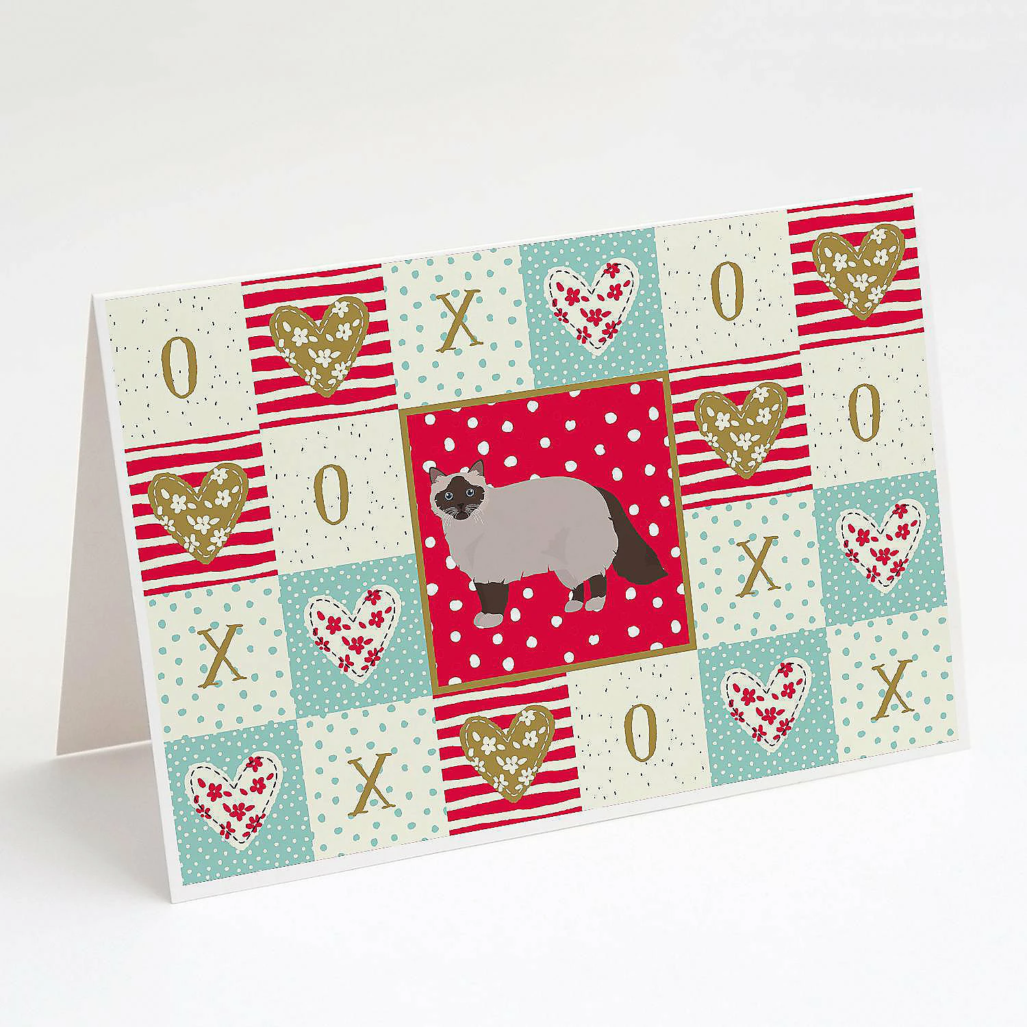 Birman Cat Love Greeting Cards and Envelopes Pack of 8. Greeting Cards and Envelopes Pack of 8 featuring breed specific Birman artwork. Celebrate Valentine’s Day with this Valentine’s Day . Caroline’s Treasures Printed Greeting card Pack. This is a pack of eight folded 5×7 cards and eight matching white envelopes. These cards are blank inside for you to add your special note or special holiday greeting. The full color artwork cards are printed in our facility in full color on our 80 lb cover stock or 216 GSM. The super smooth finish of the white cards really enhance the artwork on the card. Each card comes with a matching white envelope. The artwork on the card was created by one of our in house creative artist or one of our licensed artists. This is from Caroline’s Treasures Cats category of products.