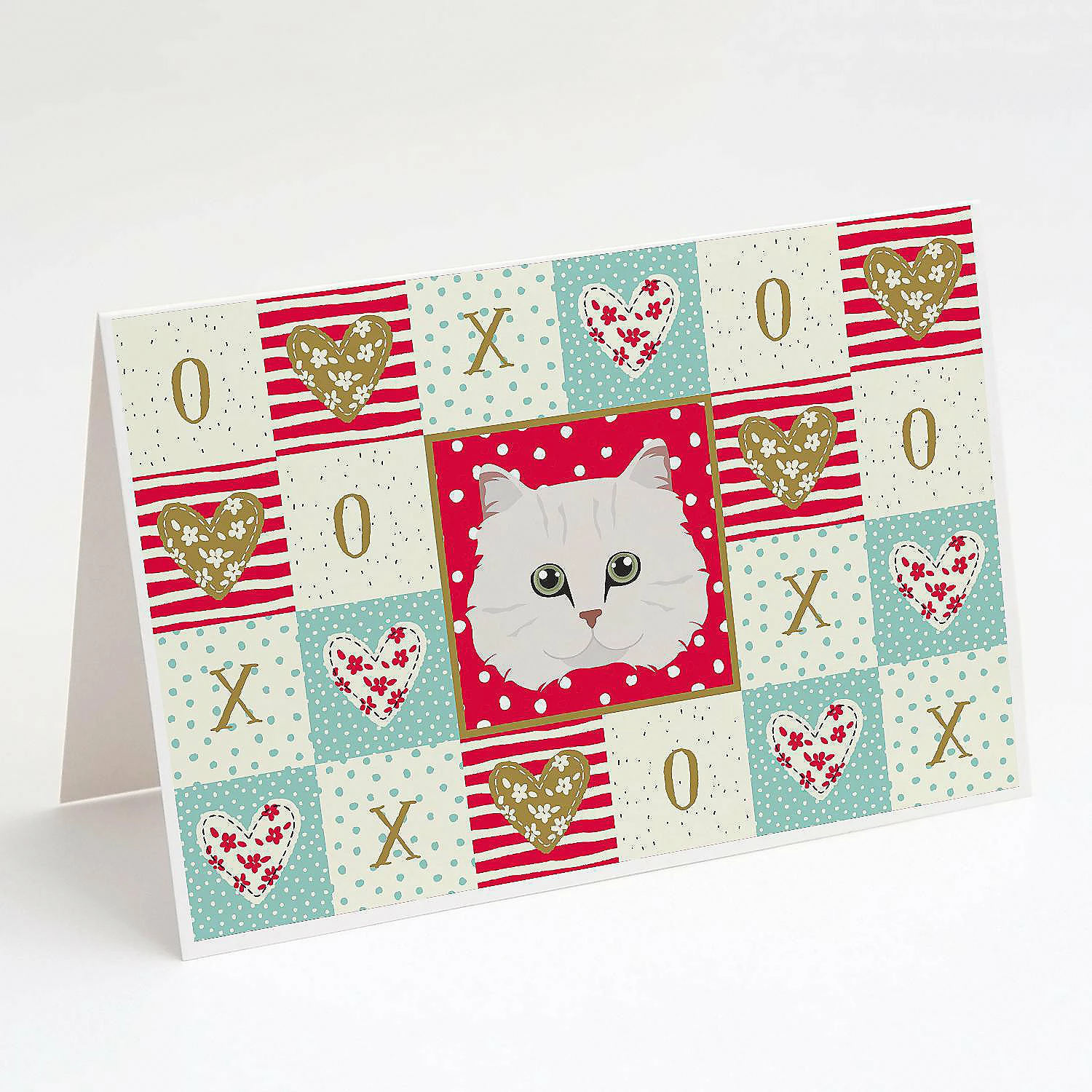 Chinchilla Persian Longhair Cat Love Greeting Cards and Envelopes Pack of 8. Greeting Cards and Envelopes Pack of 8 featuring breed specific Chinchilla Persian Longhair artwork. Celebrate Valentine’s Day with this Valentine’s Day . Caroline’s Treasures Printed Greeting card Pack. This is a pack of eight folded 5×7 cards and eight matching white envelopes. These cards are blank inside for you to add your special note or special holiday greeting. The full color artwork cards are printed in our facility in full color on our 80 lb cover stock or 216 GSM. The super smooth finish of the white cards really enhance the artwork on the card. Each card comes with a matching white envelope. The artwork on the card was created by one of our in house creative artist or one of our licensed artists. This is from Caroline’s Treasures Cats category of products.