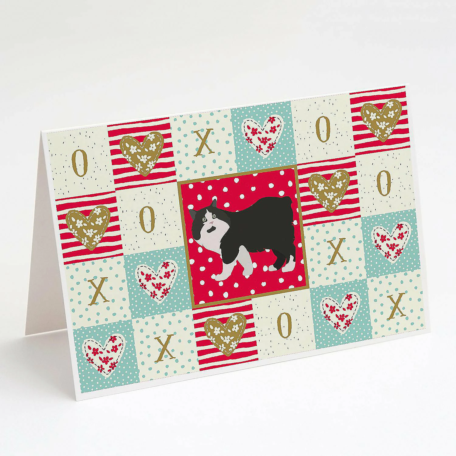 Cymric Cat Love Greeting Cards and Envelopes Pack of 8. Greeting Cards and Envelopes Pack of 8 featuring breed specific Cymric artwork. Celebrate Valentine’s Day with this Valentine’s Day . Caroline’s Treasures Printed Greeting card Pack. This is a pack of eight folded 5×7 cards and eight matching white envelopes. These cards are blank inside for you to add your special note or special holiday greeting. The full color artwork cards are printed in our facility in full color on our 80 lb cover stock or 216 GSM. The super smooth finish of the white cards really enhance the artwork on the card. Each card comes with a matching white envelope. The artwork on the card was created by one of our in house creative artist or one of our licensed artists. This is from Caroline’s Treasures Cats category of products.