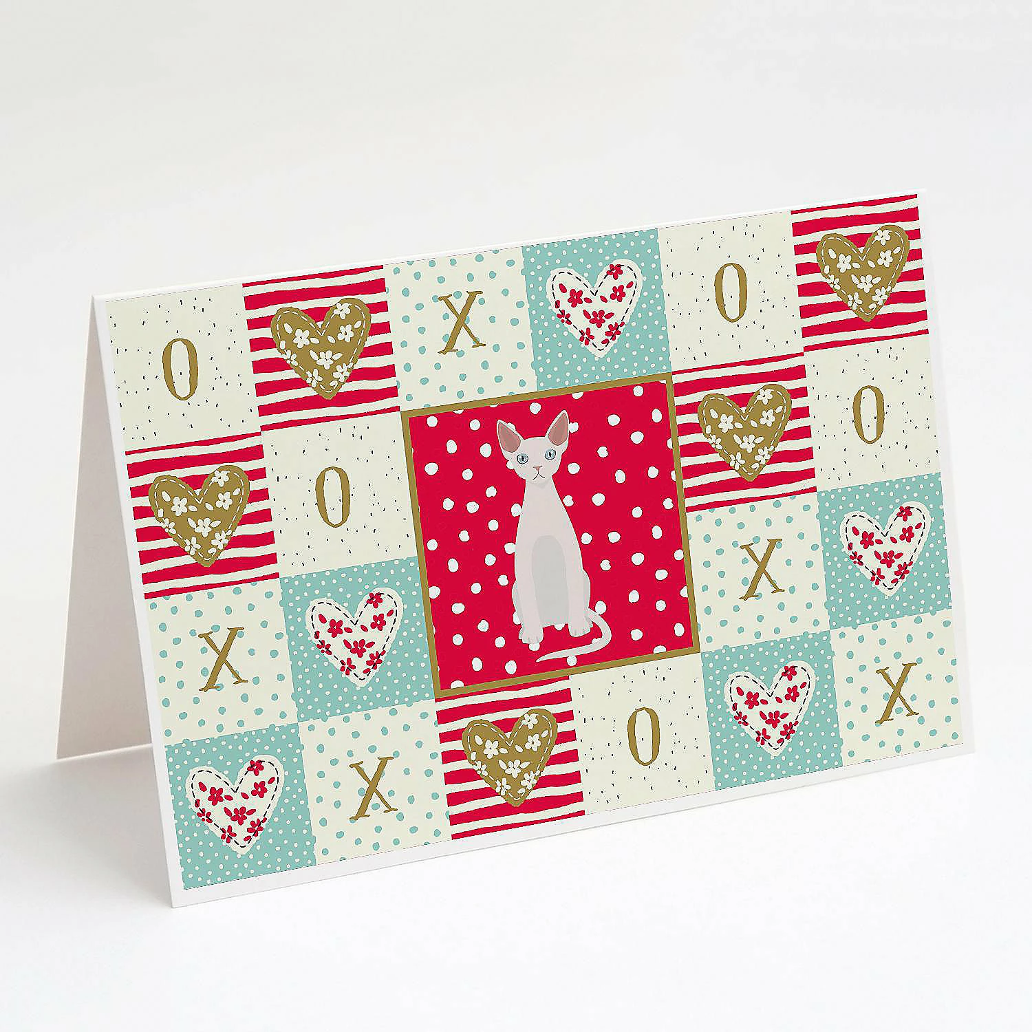 Devon Rex #2 Cat Love Greeting Cards and Envelopes Pack of 8. Greeting Cards and Envelopes Pack of 8 featuring breed specific Devon Rex artwork. Celebrate Valentine’s Day with this Valentine’s Day . Caroline’s Treasures Printed Greeting card Pack. This is a pack of eight folded 5×7 cards and eight matching white envelopes. These cards are blank inside for you to add your special note or special holiday greeting. The full color artwork cards are printed in our facility in full color on our 80 lb cover stock or 216 GSM. The super smooth finish of the white cards really enhance the artwork on the card. Each card comes with a matching white envelope. The artwork on the card was created by one of our in house creative artist or one of our licensed artists. This is from Caroline’s Treasures Cats category of products.