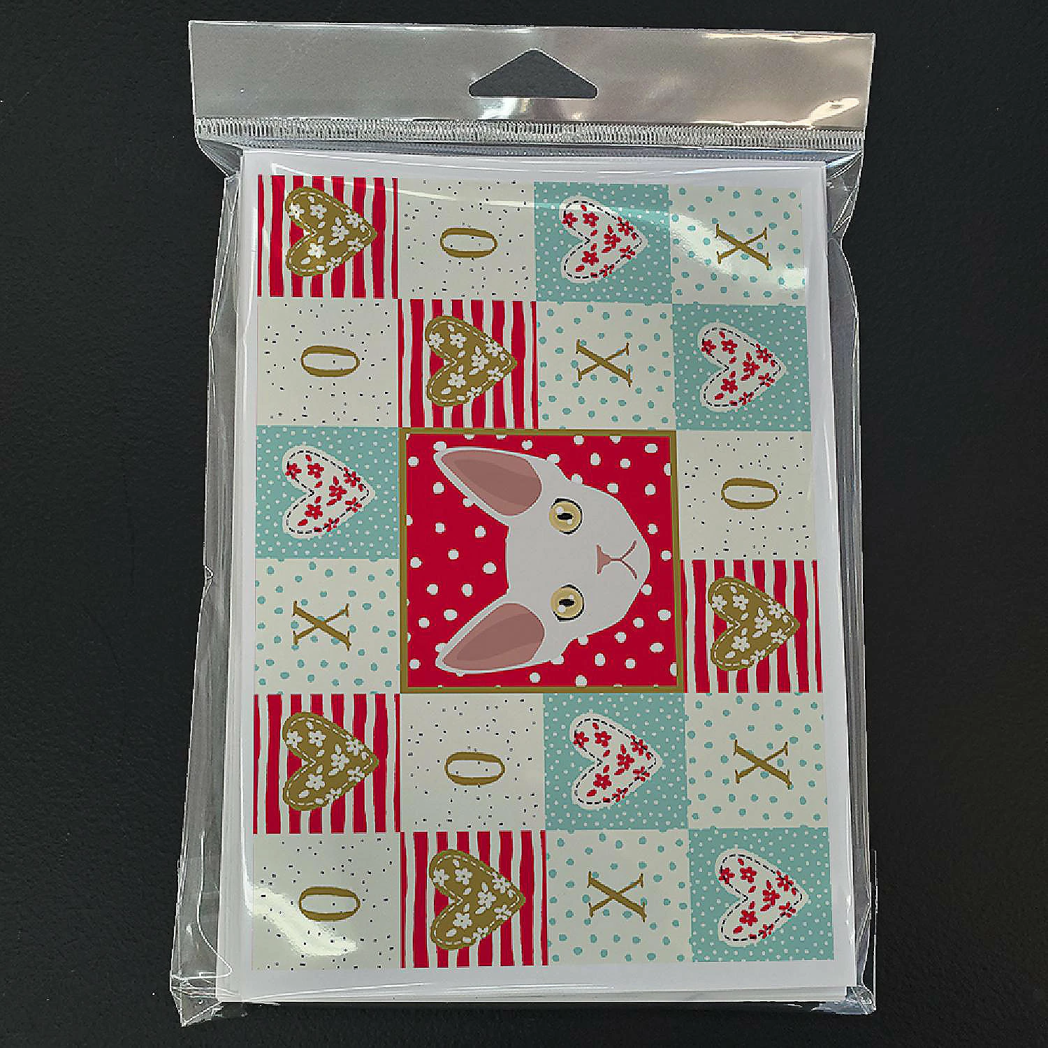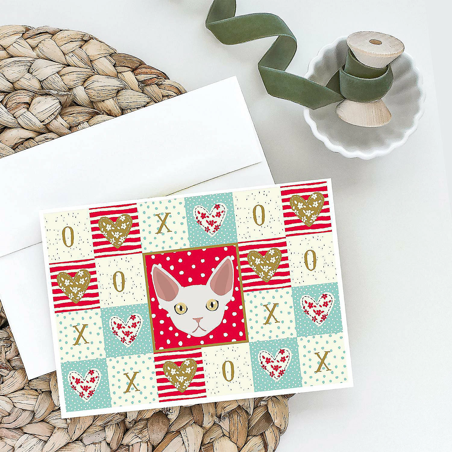 Devon Rex Cat Love Greeting Cards and Envelopes Pack of 8. Greeting Cards and Envelopes Pack of 8 featuring breed specific Devon Rex artwork. Celebrate Valentine’s Day with this Valentine’s Day . Caroline’s Treasures Printed Greeting card Pack. This is a pack of eight folded 5×7 cards and eight matching white envelopes. These cards are blank inside for you to add your special note or special holiday greeting. The full color artwork cards are printed in our facility in full color on our 80 lb cover stock or 216 GSM. The super smooth finish of the white cards really enhance the artwork on the card. Each card comes with a matching white envelope. The artwork on the card was created by one of our in house creative artist or one of our licensed artists. This is from Caroline’s Treasures Cats category of products.