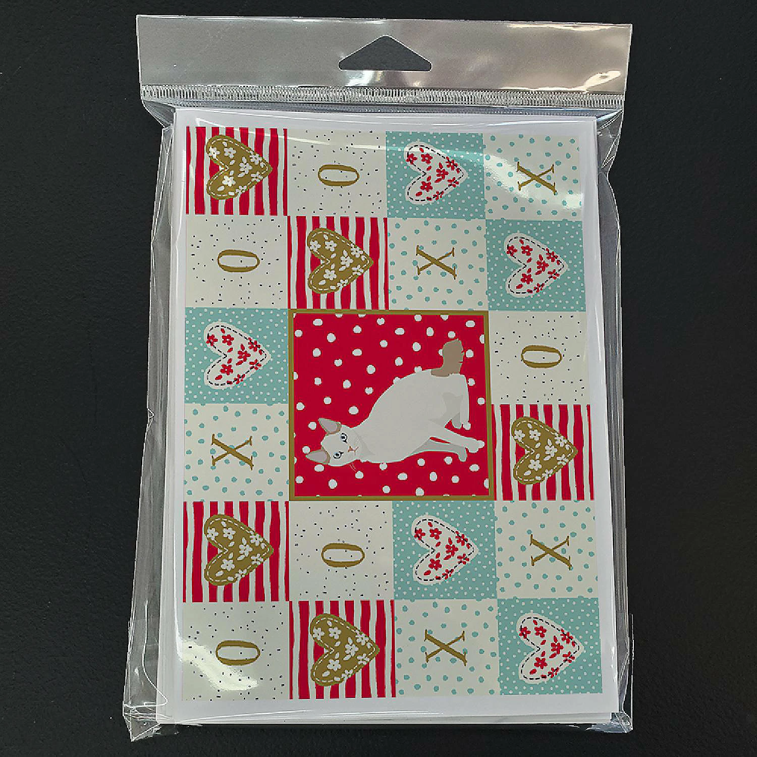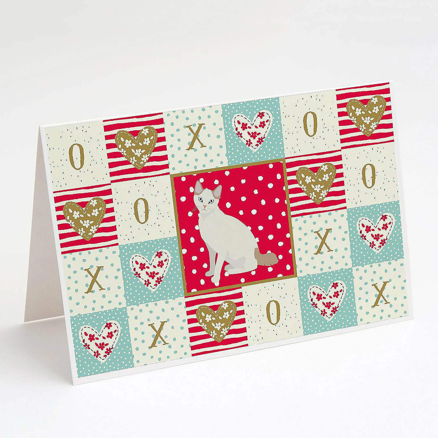 Korean Bobtail Cat Love Greeting Cards and Envelopes Pack of 8. Greeting Cards and Envelopes Pack of 8 featuring breed specific Korean Bobtail artwork. Celebrate Valentine’s Day with this Valentine’s Day . Caroline’s Treasures Printed Greeting card Pack. This is a pack of eight folded 5×7 cards and eight matching white envelopes. These cards are blank inside for you to add your special note or special holiday greeting. The full color artwork cards are printed in our facility in full color on our 80 lb cover stock or 216 GSM. The super smooth finish of the white cards really enhance the artwork on the card. Each card comes with a matching white envelope. The artwork on the card was created by one of our in house creative artist or one of our licensed artists. This is from Caroline’s Treasures Cats category of products.
