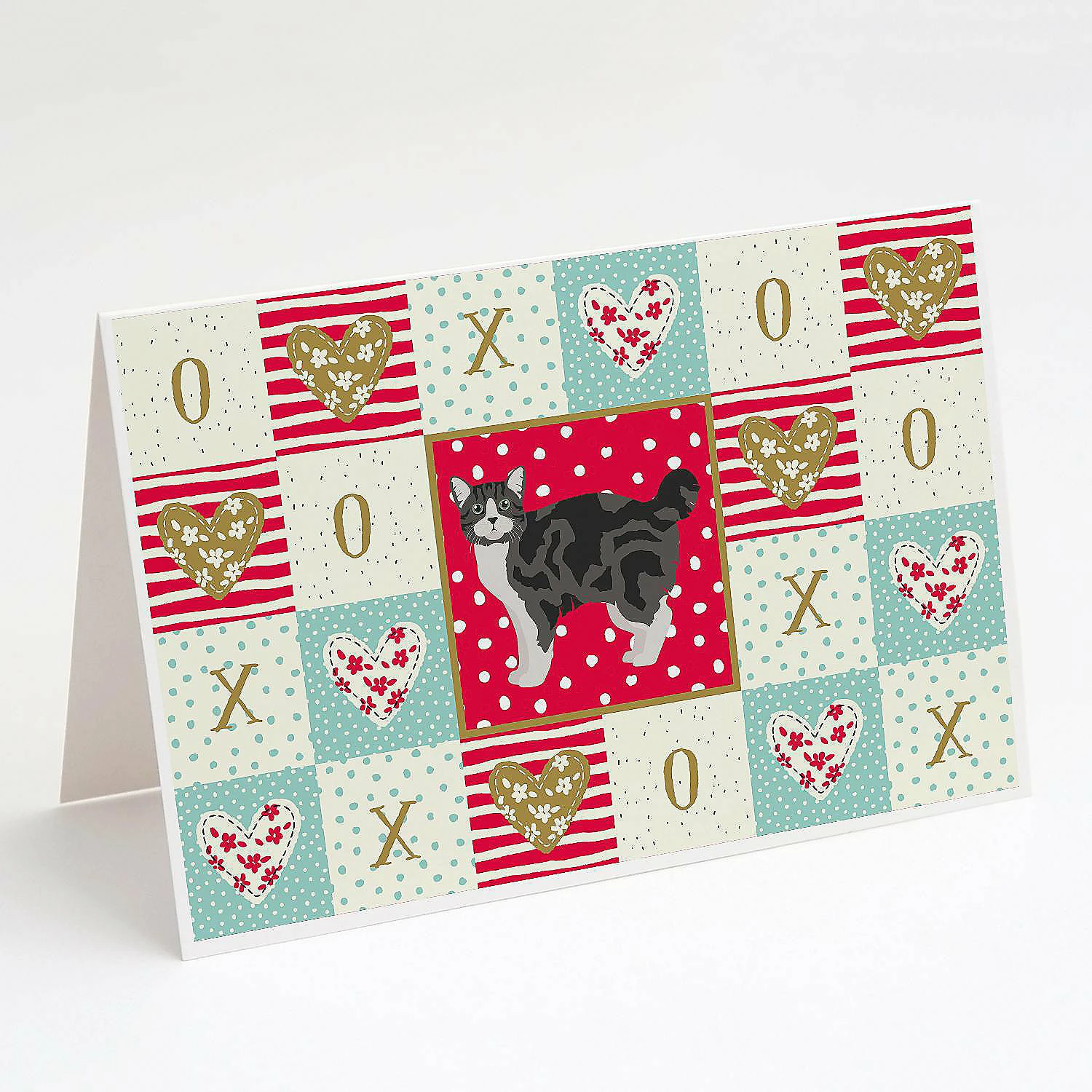 Manx #1 Cat Love Greeting Cards and Envelopes Pack of 8. Greeting Cards and Envelopes Pack of 8 featuring breed specific Manx artwork. Celebrate Valentine’s Day with this Valentine’s Day . Caroline’s Treasures Printed Greeting card Pack. This is a pack of eight folded 5×7 cards and eight matching white envelopes. These cards are blank inside for you to add your special note or special holiday greeting. The full color artwork cards are printed in our facility in full color on our 80 lb cover stock or 216 GSM. The super smooth finish of the white cards really enhance the artwork on the card. Each card comes with a matching white envelope. The artwork on the card was created by one of our in house creative artist or one of our licensed artists. This is from Caroline’s Treasures Cats category of products.