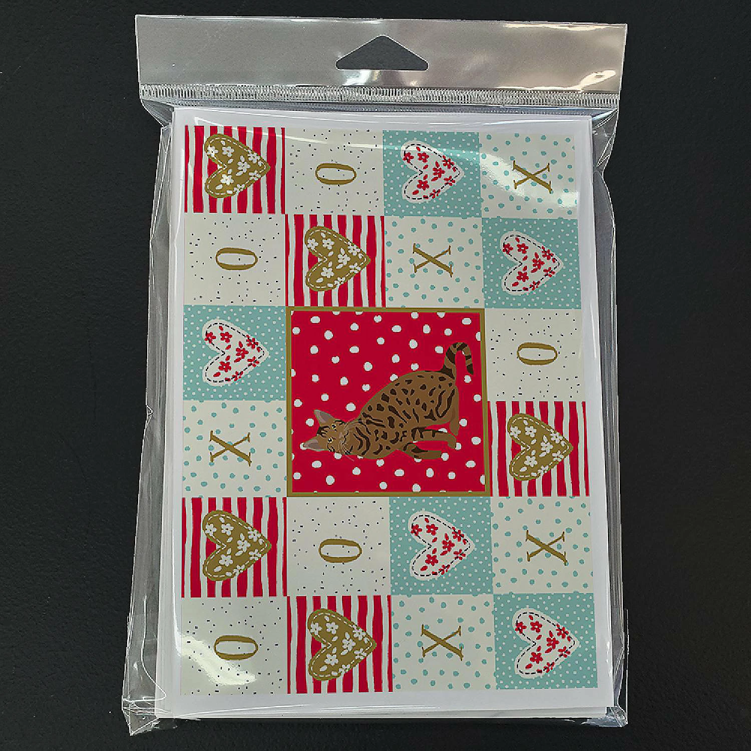 Ocicat #2 Cat Love Greeting Cards and Envelopes Pack of 8. Greeting Cards and Envelopes Pack of 8 featuring breed specific Ocicat artwork. Celebrate Valentine’s Day with this Valentine’s Day . Caroline’s Treasures Printed Greeting card Pack. This is a pack of eight folded 5×7 cards and eight matching white envelopes. These cards are blank inside for you to add your special note or special holiday greeting. The full color artwork cards are printed in our facility in full color on our 80 lb cover stock or 216 GSM. The super smooth finish of the white cards really enhance the artwork on the card. Each card comes with a matching white envelope. The artwork on the card was created by one of our in house creative artist or one of our licensed artists. This is from Caroline’s Treasures Cats category of products.