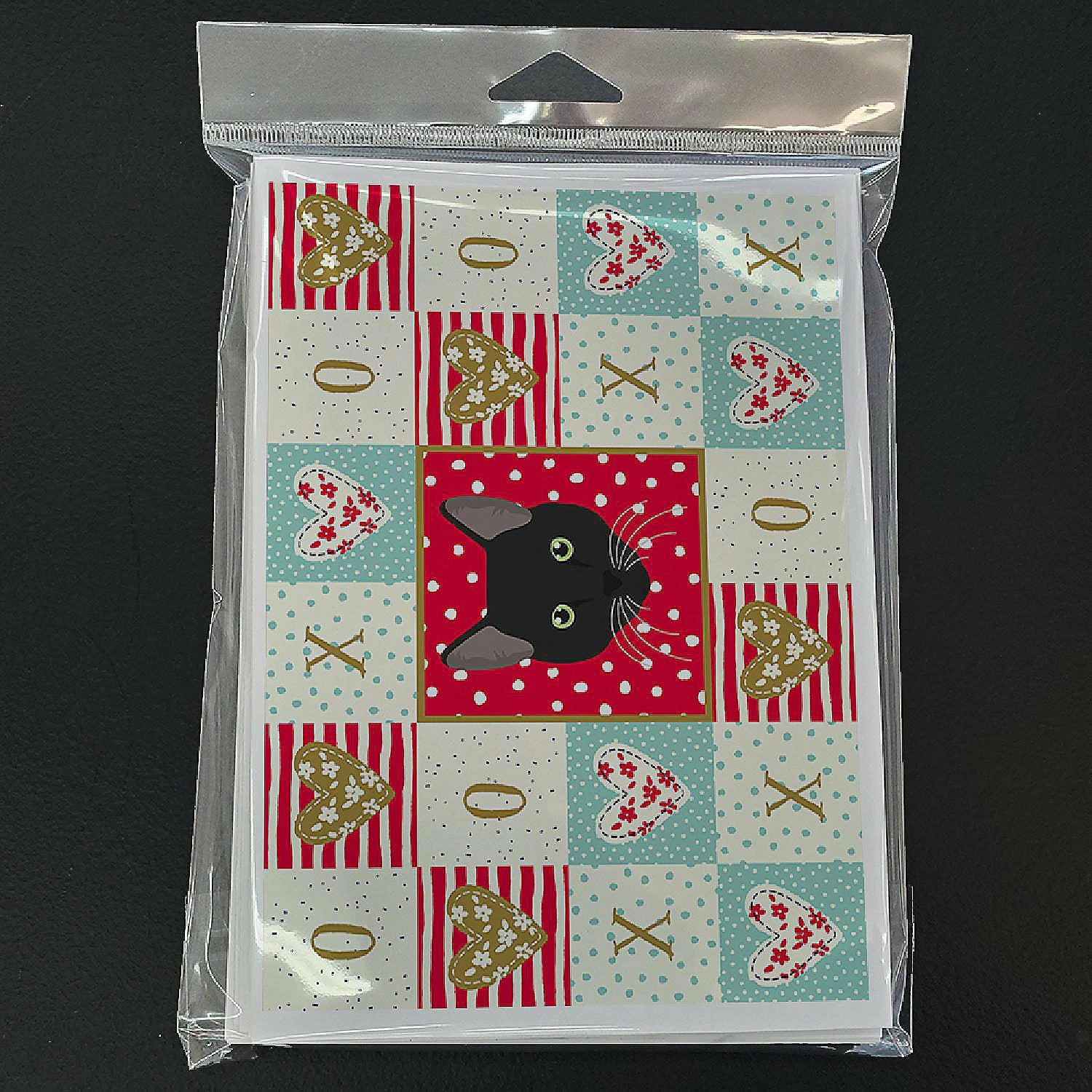 Pantherette Cat Love Greeting Cards and Envelopes Pack of 8. Greeting Cards and Envelopes Pack of 8 featuring breed specific Pantherette artwork. Celebrate Valentine’s Day with this Valentine’s Day . Caroline’s Treasures Printed Greeting card Pack. This is a pack of eight folded 5×7 cards and eight matching white envelopes. These cards are blank inside for you to add your special note or special holiday greeting. The full color artwork cards are printed in our facility in full color on our 80 lb cover stock or 216 GSM. The super smooth finish of the white cards really enhance the artwork on the card. Each card comes with a matching white envelope. The artwork on the card was created by one of our in house creative artist or one of our licensed artists. This is from Caroline’s Treasures Cats category of products.