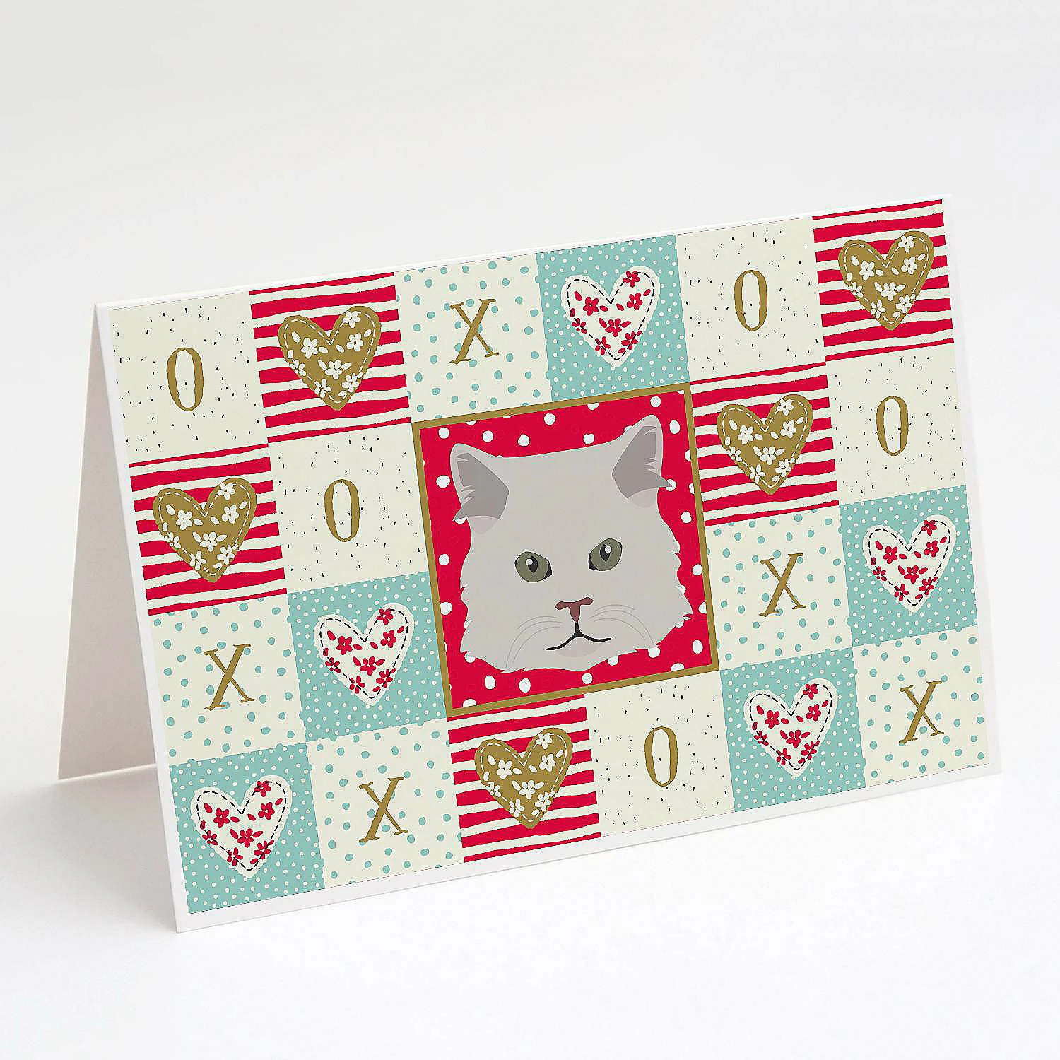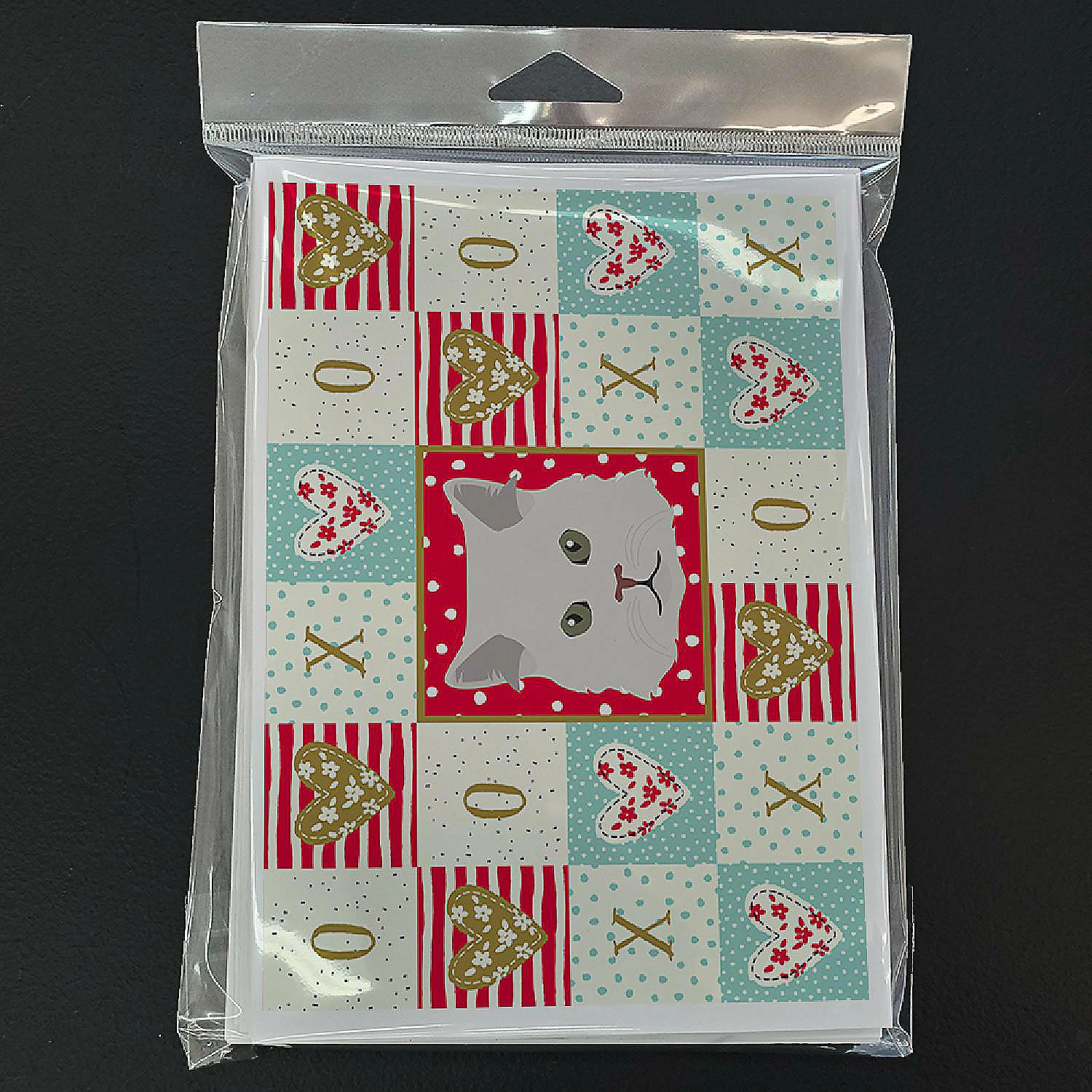 Persian Traditional Cat Love Greeting Cards and Envelopes Pack of 8. Greeting Cards and Envelopes Pack of 8 featuring breed specific Persian artwork. Celebrate Valentine’s Day with this Valentine’s Day . Caroline’s Treasures Printed Greeting card Pack. This is a pack of eight folded 5×7 cards and eight matching white envelopes. These cards are blank inside for you to add your special note or special holiday greeting. The full color artwork cards are printed in our facility in full color on our 80 lb cover stock or 216 GSM. The super smooth finish of the white cards really enhance the artwork on the card. Each card comes with a matching white envelope. The artwork on the card was created by one of our in house creative artist or one of our licensed artists. This is from Caroline’s Treasures Cats category of products.