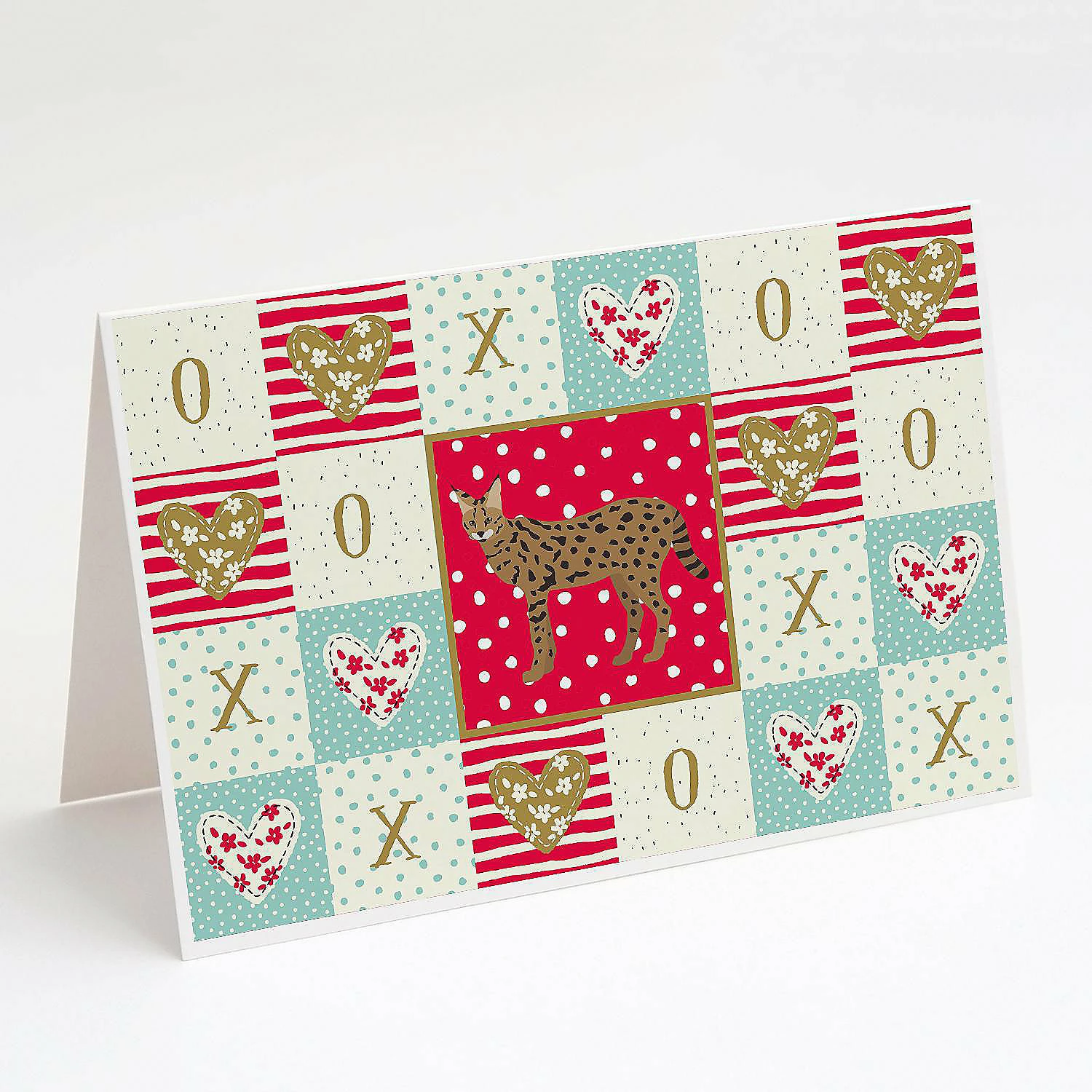 Savannah #3 Cat Love Greeting Cards and Envelopes Pack of 8. Greeting Cards and Envelopes Pack of 8 featuring breed specific Savannah artwork. Celebrate Valentine’s Day with this Valentine’s Day . Caroline’s Treasures Printed Greeting card Pack. This is a pack of eight folded 5×7 cards and eight matching white envelopes. These cards are blank inside for you to add your special note or special holiday greeting. The full color artwork cards are printed in our facility in full color on our 80 lb cover stock or 216 GSM. The super smooth finish of the white cards really enhance the artwork on the card. Each card comes with a matching white envelope. The artwork on the card was created by one of our in house creative artist or one of our licensed artists. This is from Caroline’s Treasures Cats category of products.