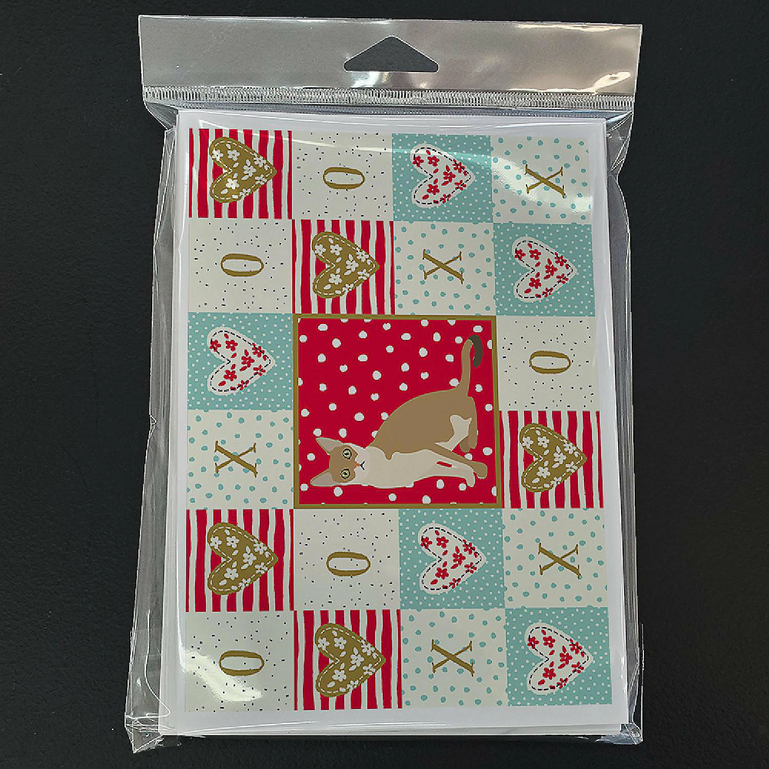 Singapura Cat Love Greeting Cards and Envelopes Pack of 8. Greeting Cards and Envelopes Pack of 8 featuring breed specific Singapura artwork. Celebrate Valentine’s Day with this Valentine’s Day . Caroline’s Treasures Printed Greeting card Pack. This is a pack of eight folded 5×7 cards and eight matching white envelopes. These cards are blank inside for you to add your special note or special holiday greeting. The full color artwork cards are printed in our facility in full color on our 80 lb cover stock or 216 GSM. The super smooth finish of the white cards really enhance the artwork on the card. Each card comes with a matching white envelope. The artwork on the card was created by one of our in house creative artist or one of our licensed artists. This is from Caroline’s Treasures Cats category of products.