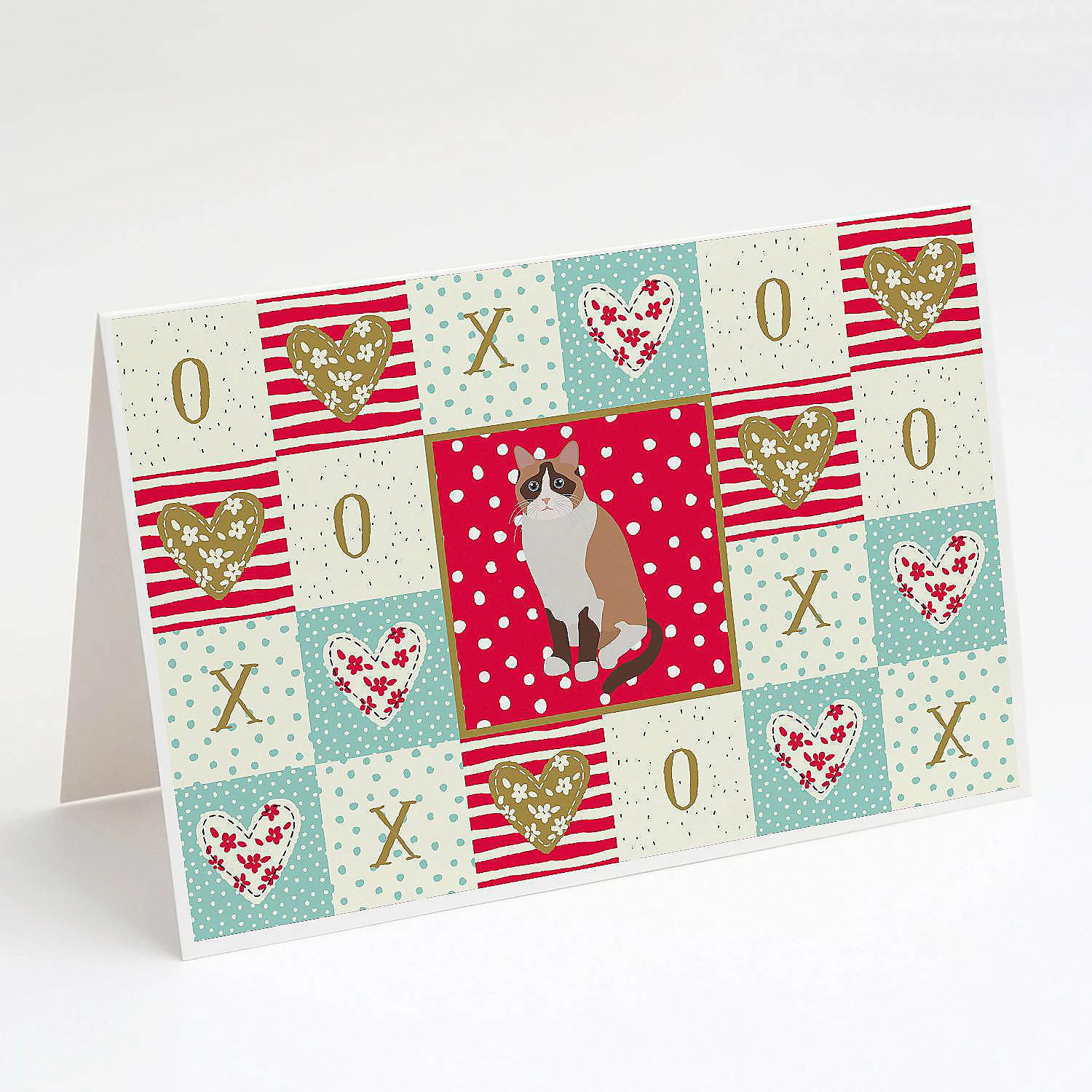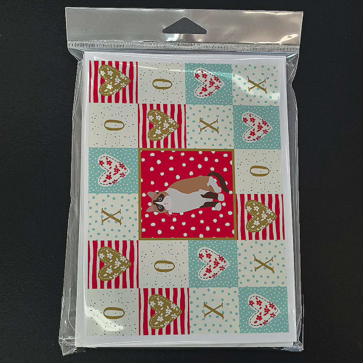 Snowshoe Cat Love Greeting Cards and Envelopes Pack of 8. Greeting Cards and Envelopes Pack of 8 featuring breed specific Snowshoe artwork. Celebrate Valentine’s Day with this Valentine’s Day . Caroline’s Treasures Printed Greeting card Pack. This is a pack of eight folded 5×7 cards and eight matching white envelopes. These cards are blank inside for you to add your special note or special holiday greeting. The full color artwork cards are printed in our facility in full color on our 80 lb cover stock or 216 GSM. The super smooth finish of the white cards really enhance the artwork on the card. Each card comes with a matching white envelope. The artwork on the card was created by one of our in house creative artist or one of our licensed artists. This is from Caroline’s Treasures Cats category of products.