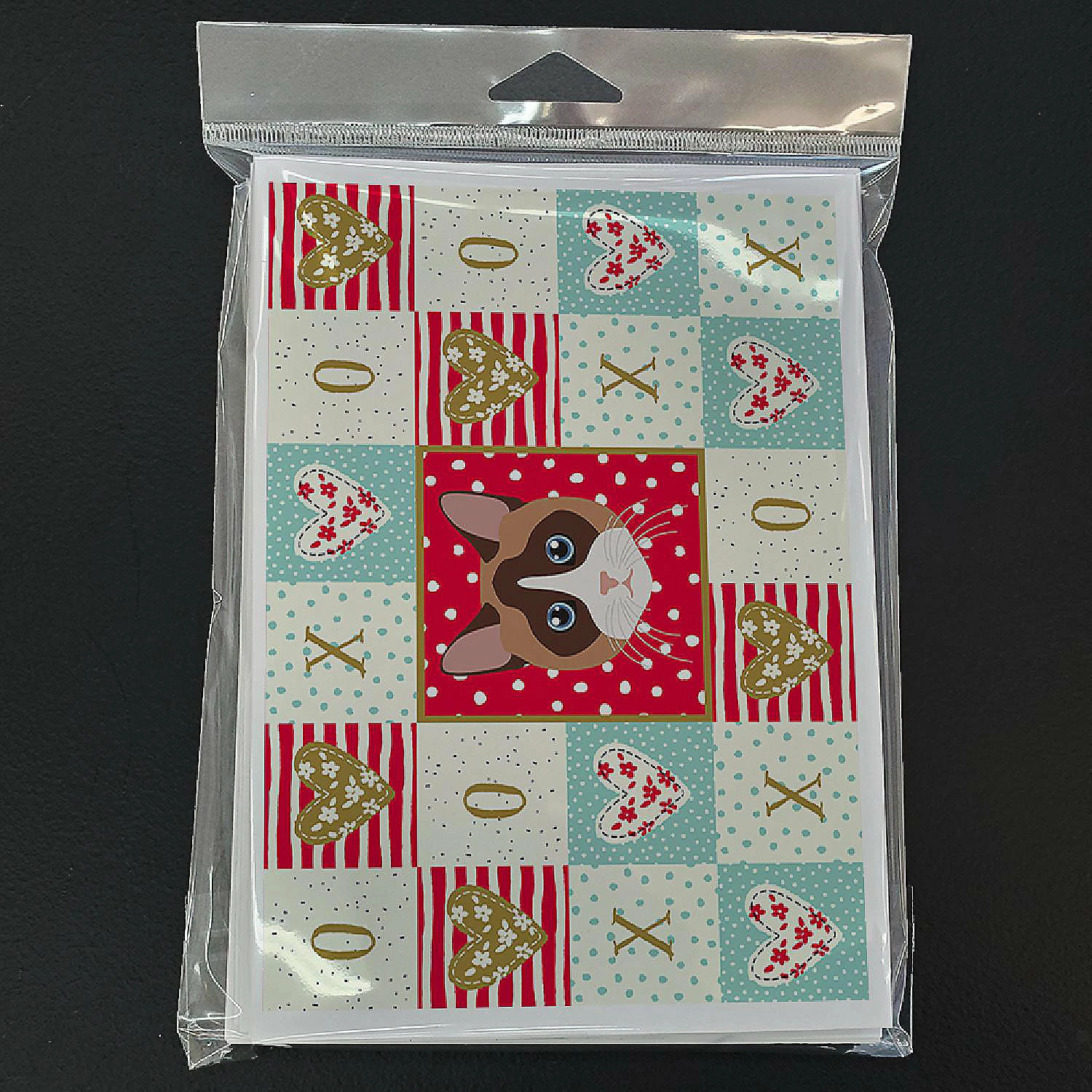 Snowshoe Cat Love Greeting Cards and Envelopes Pack of 8. Greeting Cards and Envelopes Pack of 8 featuring breed specific Snowshoe artwork. Celebrate Valentine’s Day with this Valentine’s Day . Caroline’s Treasures Printed Greeting card Pack. This is a pack of eight folded 5×7 cards and eight matching white envelopes. These cards are blank inside for you to add your special note or special holiday greeting. The full color artwork cards are printed in our facility in full color on our 80 lb cover stock or 216 GSM. The super smooth finish of the white cards really enhance the artwork on the card. Each card comes with a matching white envelope. The artwork on the card was created by one of our in house creative artist or one of our licensed artists. This is from Caroline’s Treasures Cats category of products.