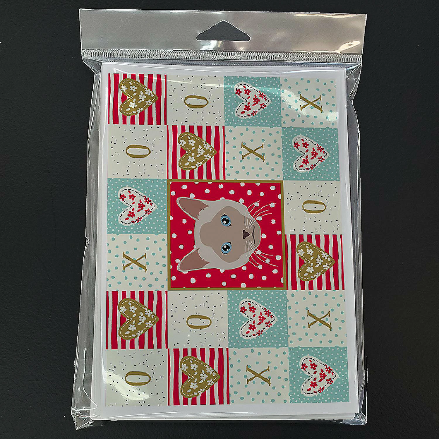 Thai lilac Cat Love Greeting Cards and Envelopes Pack of 8. Greeting Cards and Envelopes Pack of 8 featuring breed specific Thai lilac artwork. Celebrate Valentine’s Day with this Valentine’s Day . Caroline’s Treasures Printed Greeting card Pack. This is a pack of eight folded 5×7 cards and eight matching white envelopes. These cards are blank inside for you to add your special note or special holiday greeting. The full color artwork cards are printed in our facility in full color on our 80 lb cover stock or 216 GSM. The super smooth finish of the white cards really enhance the artwork on the card. Each card comes with a matching white envelope. The artwork on the card was created by one of our in house creative artist or one of our licensed artists. This is from Caroline’s Treasures Cats category of products.