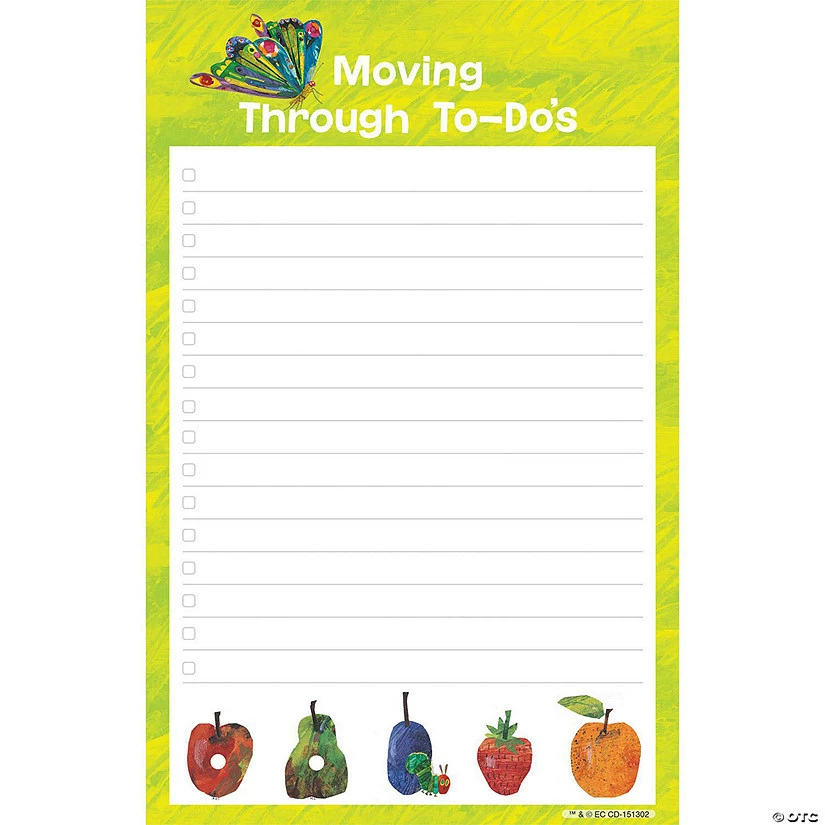 The World of Eric Carle: The beloved children’s book The Very Hungry Caterpillar by Eric Carle comes to life in the vibrant, Moving Through To-Dos Notepad. This colorful writing pad adds style and creativity to your day-to-day notes and checklists.WHAT’S INCLUDED: The pad boasts 50 acid-free and lignin-free sheets that tear off with ease when you grab for a sheet. The lined pad includes a “Moving Through To-Do’s” header, the Hungry Caterpillar, butterfly, and fruit on a neon green background.
