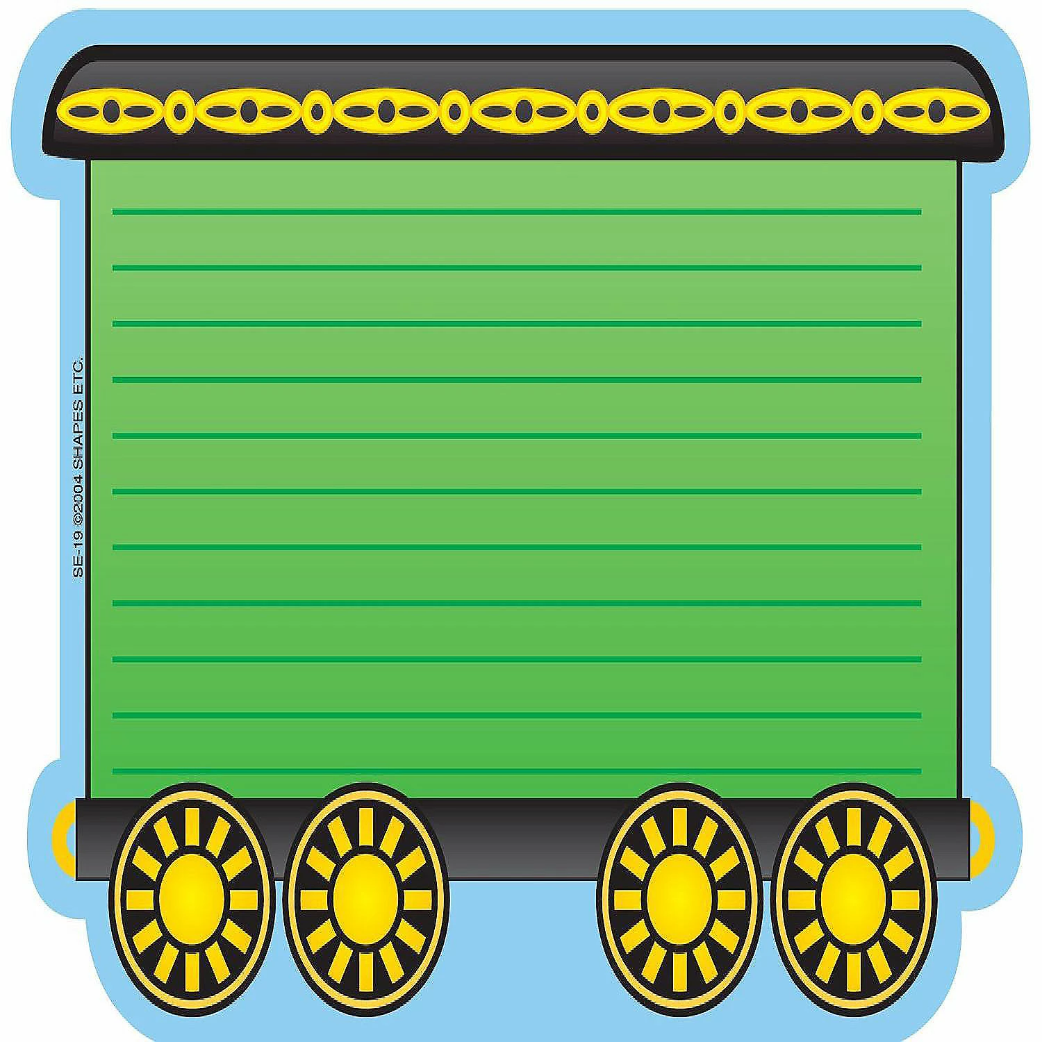 Our Box Car Notepad has 50 sheets per package and is approx. 5″ x 7.” It is great for making word cards, shaped books, game parts, scrapbooks and much more. ACID FREE!Project Examples:Many ideas for Train Notepads!