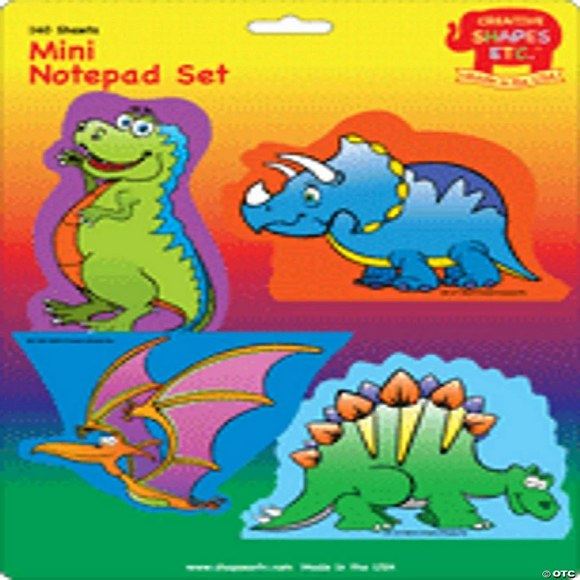 Mini Dinosaur Notepad Set includes four designs with 35 sheets each pad (140 sheets total). T-Rex, Triceratops, Pterodactyl, and Stegosaurus.