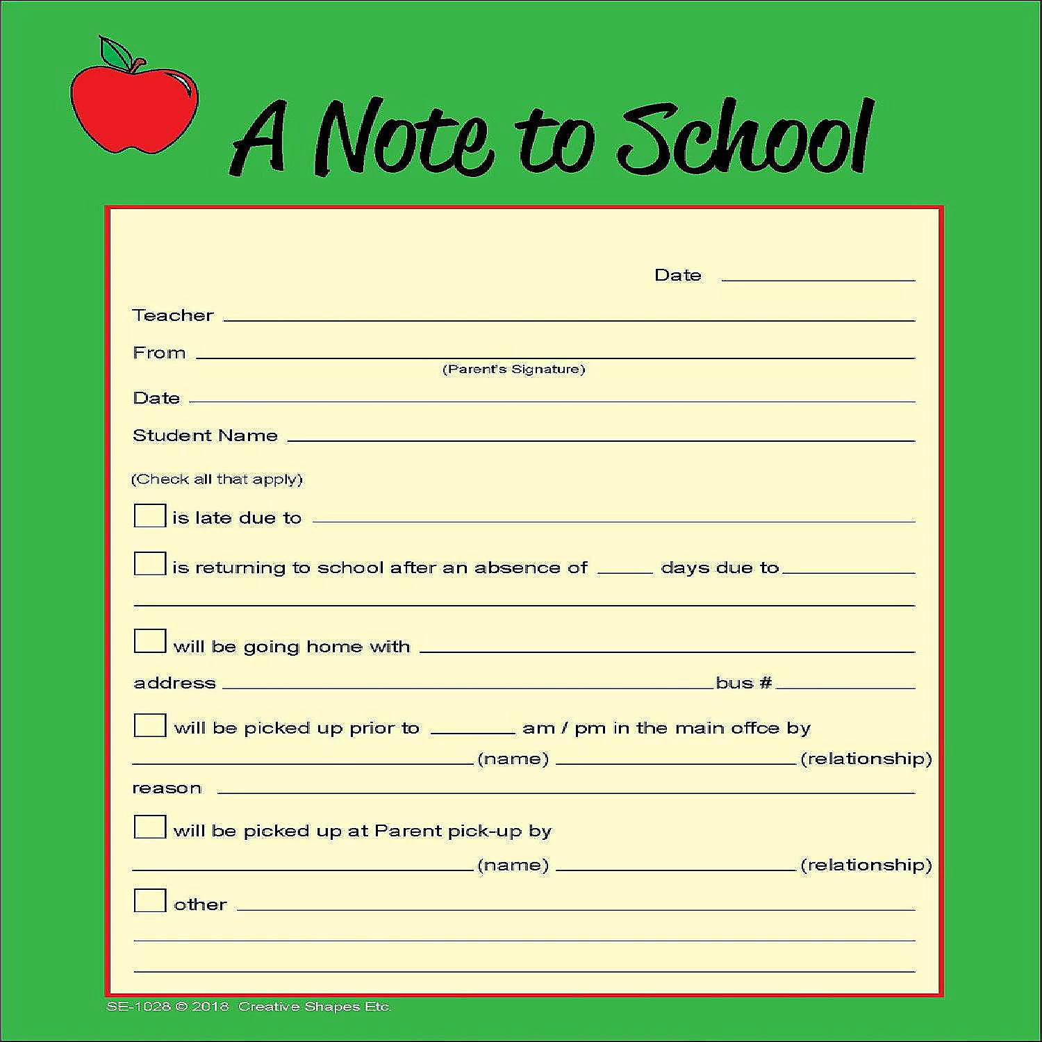 Note to School is a 50 sheet large notepad, approximate size 5″ x 7″.Notes to Parents™ are great for documenting communication. Ideal to protect teachers and the signature verifies parental acknowledgement. Perfect for documenting student progress, invitations for meetings, disciplinary actions, requests for help with homework, and more! MANY USES: Notes to Parents – Note to School is perfect for documenting communication between parents and their kid’s teachers and schools. Documents reasons for being late, absences from school, coordinating student pickup from school, rides home on the bus with friends and more.WONDERFUL PARENTAL TOOL: Functional but with creative flair, these notepads are a great tool for sending notes to teachers or the school. Cute designs add a touch of creativity to notes and help the notes stand out among other slips of paper.TIME SAVER FOR PARENTS: Easy to fill out forms make sending notes to the school simple and effortless. Simply use the check boxes and add any additional comments that are needed.HIGH QUALITY: Notes to Parents – Note to School is made with high quality paper; paper is acid free and PH neutral.MADE IN USA: Note to School – Notes to Parents comes with 50 sheets to a notepad, measure 5” x 7” and are made in the USA