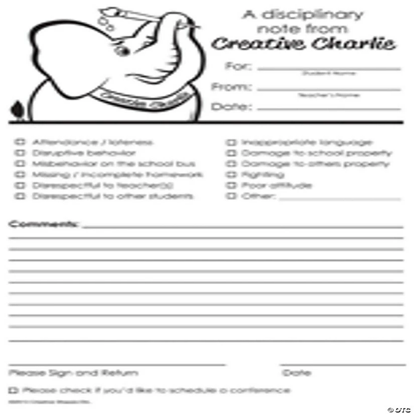 These Creative Charlie notes are great for documenting communication . Two-part carbon-less forms documents communication and creates a file copy instantly! Ideal to protect teachers and the signature verifies parental acknowledgement. Perfect for documenting student progress, invitation for meetings, disciplinary actions, requests for help with homework, and more. 5.5″ x 8.5″. 50 forms per pack.