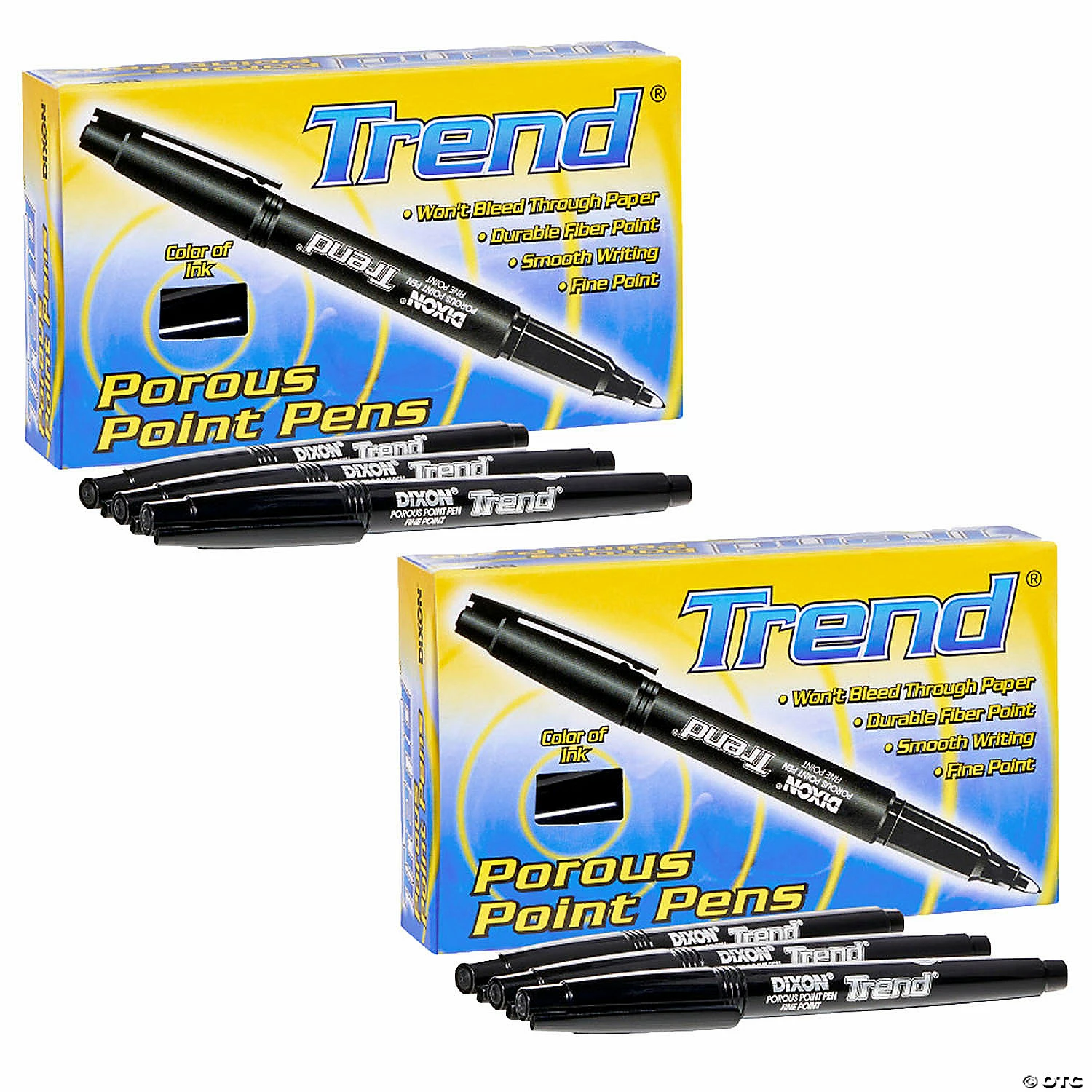 Dixonยฎ Trendโข Synthetic Tip Pens have a durable fiber fine tip which allows for smooth writing. Ink is very low odor and will not bleed through paper. Non-toxic. Each box includes 12 pens with black ink. Sold as 2 boxes for a total of 24 pens. Special Shipping Information: This item ships separately from other items in your order. This item cannot ship to a P.O. Box. This item may be subject to additional processing days. ITEM IS NOT ELIGIBLE FOR EXPEDITED SHIPPING You may initiate a return for unused items within 30 days, if the items are in original packaging with all original materials included with the shipment.