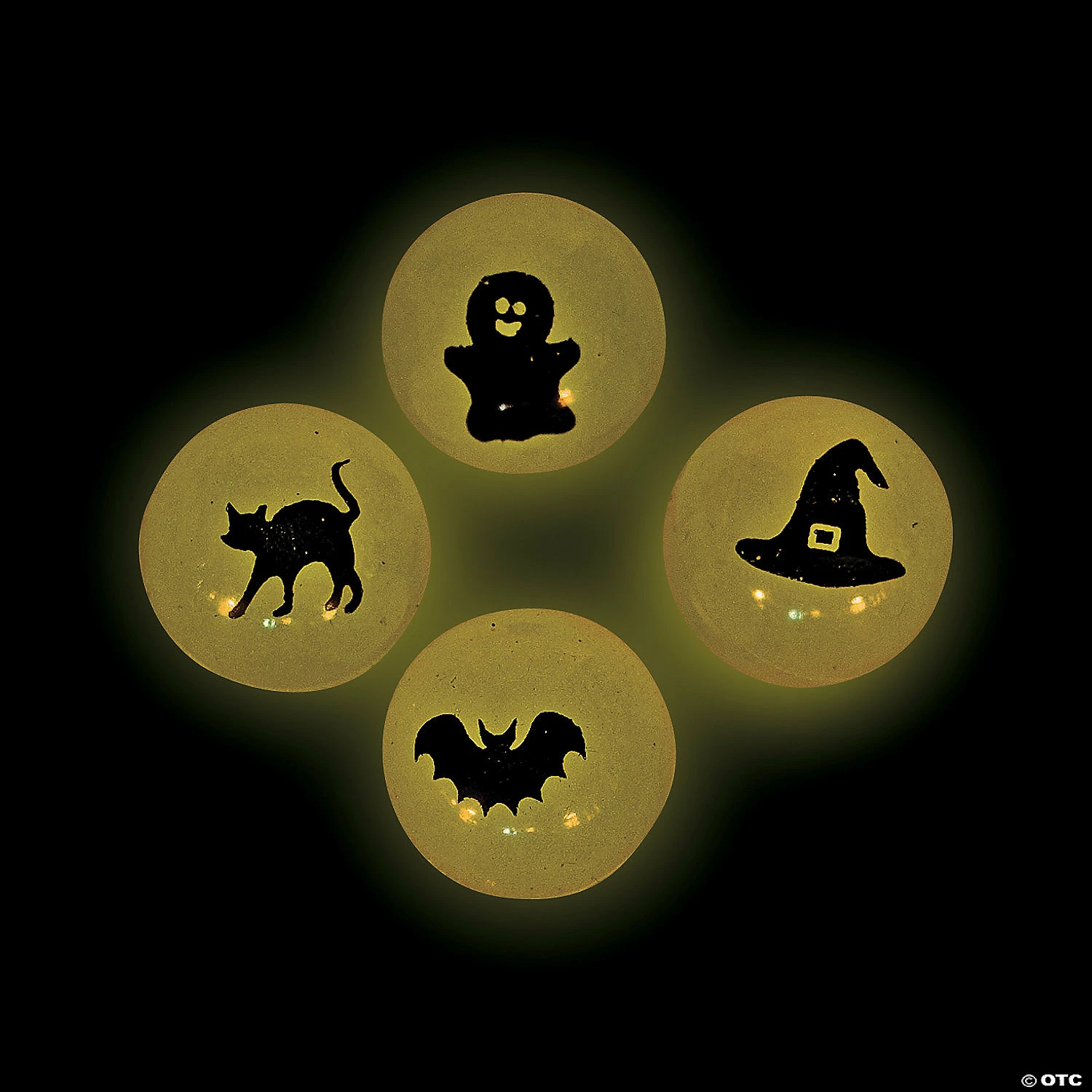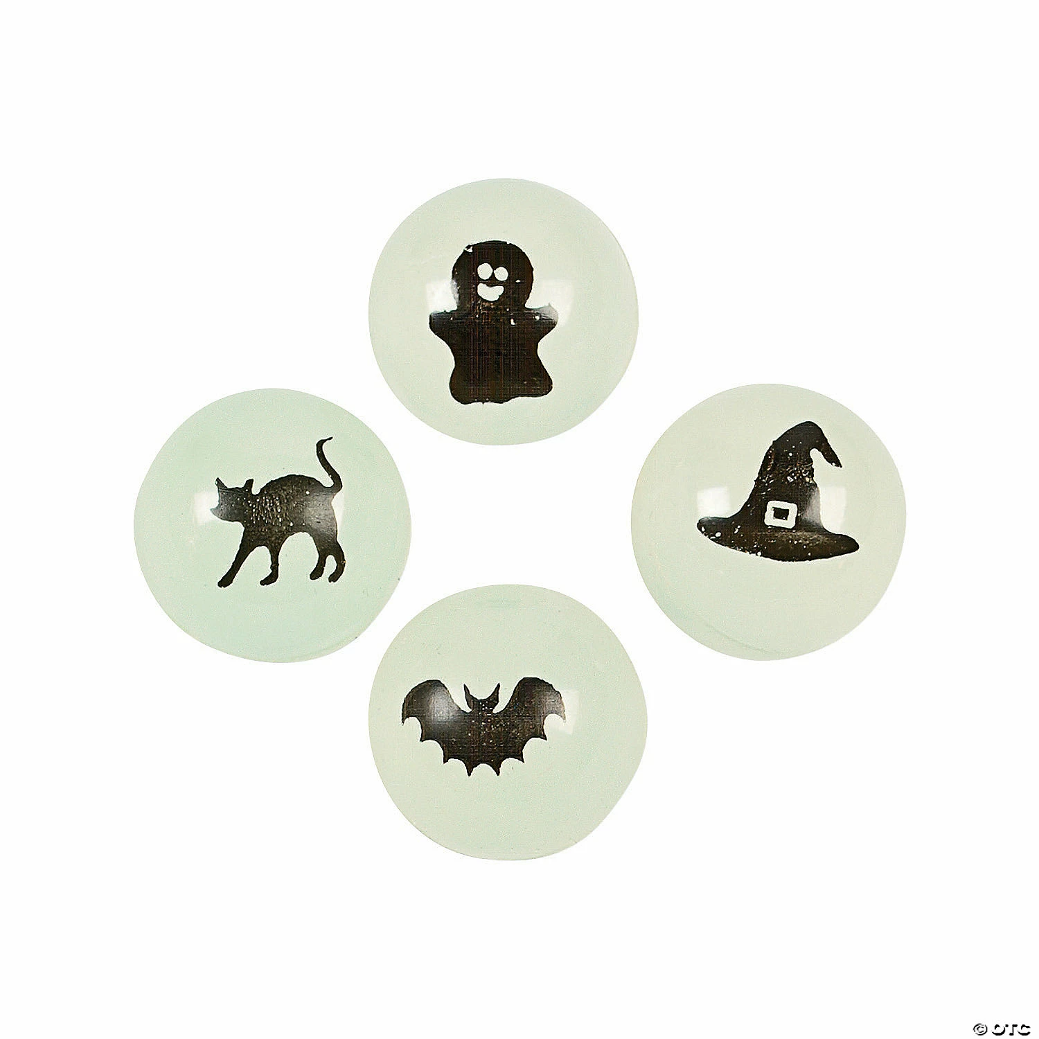 Give something more fun than Halloween candy to trick-or-treaters! These bouncing balls are Halloween toys that work perfectly as party favors. Fill a containers with glow-in-the-dark, sugarless treats to light up your Halloween haunted house with an eerie yet charming ambience. Includes 4 different spooky silhouettes! Rubber. (4 dozen per unit) 1″ (25mm) Expose items to daylight to activate glow. ยฉ OTC