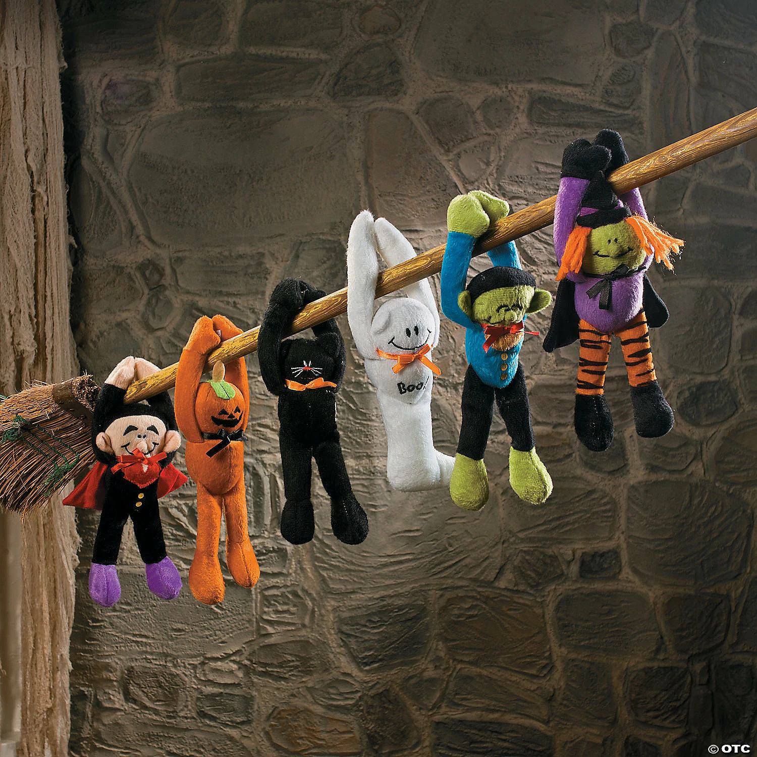 These ghoulish characters have touch fasteners on their hands. Hang these plush monsters overhead or along banisters at your child’s Halloween party for a frightful frill! Kids love to hang these long-armed hooligans around their dresser pulls, doorknobs and bed posts! Green monsters, vampires, pumpkins, ghosts, witches and black cats round out this sinister group! Hanging, 10 3/4″ – 12″; arm span, 11 1/2″ – 12 1/2″.
