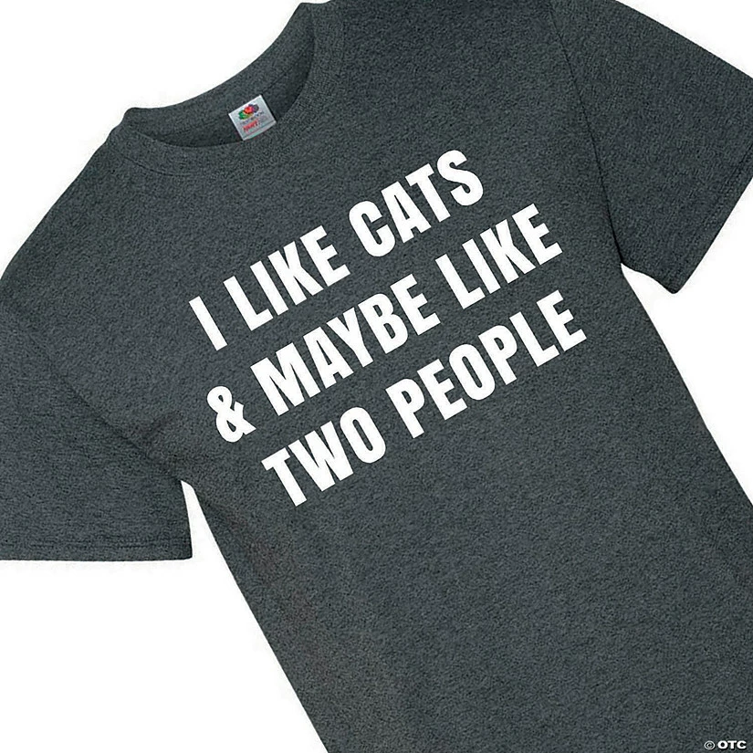 If you’re a cat mom (or cat dad) this funny shirt may ring a little too true. If you prefer the company of felines, and a few select people, you need this comfy t-shirt to wear out and about so people around you know where your priorities are! A fun addition to your novelty t-shirt collection, it makes a great shirt to wear on casual Fridays around the office. © OTC• Brand: Fruit of the Loom• Short sleeve• 50% cotton and 50% polyester• High-density fabric• Tear away label• Double needle hemmed sleeves and bottom• Need more? With our tees, we’ve got your back (and front)! To order in bulk for any size group, just call 1-877-513-0384. Or, give us a ring if you’d like to easily customize any of our pre-printed shirts with our free design service.