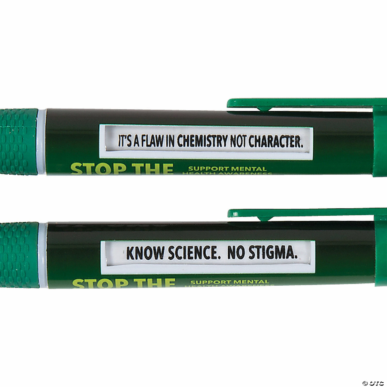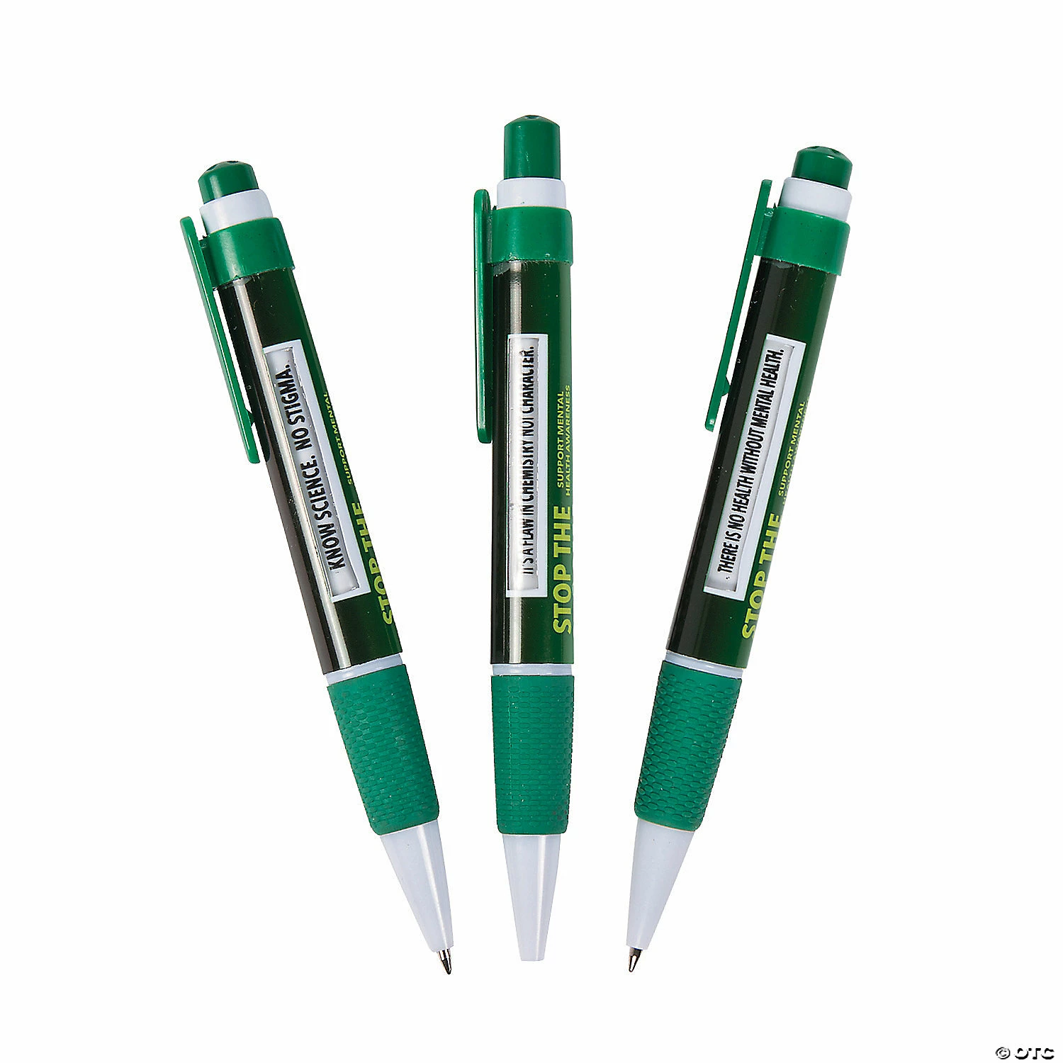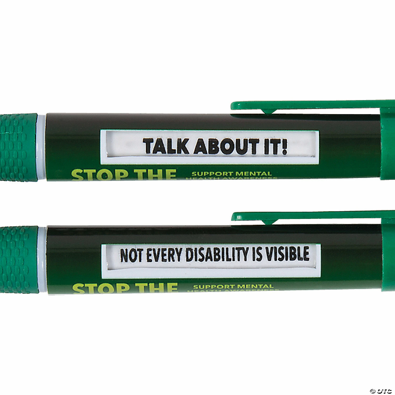 Get your message across that mental illness is nothing to be ashamed of. Hand these pens out at fundraisers or pass them out at the office or in schools during Mental Health Awareness month. Our Mental Health Awareness click pens feature six inspiring phrases that say loud and clear that the stigma surrounding a disability that affects millions of people is not all “write”. Bring understanding and support to a cause that’s close to your heart. Blue ink. Plastic. 5 1/2″ © OTC