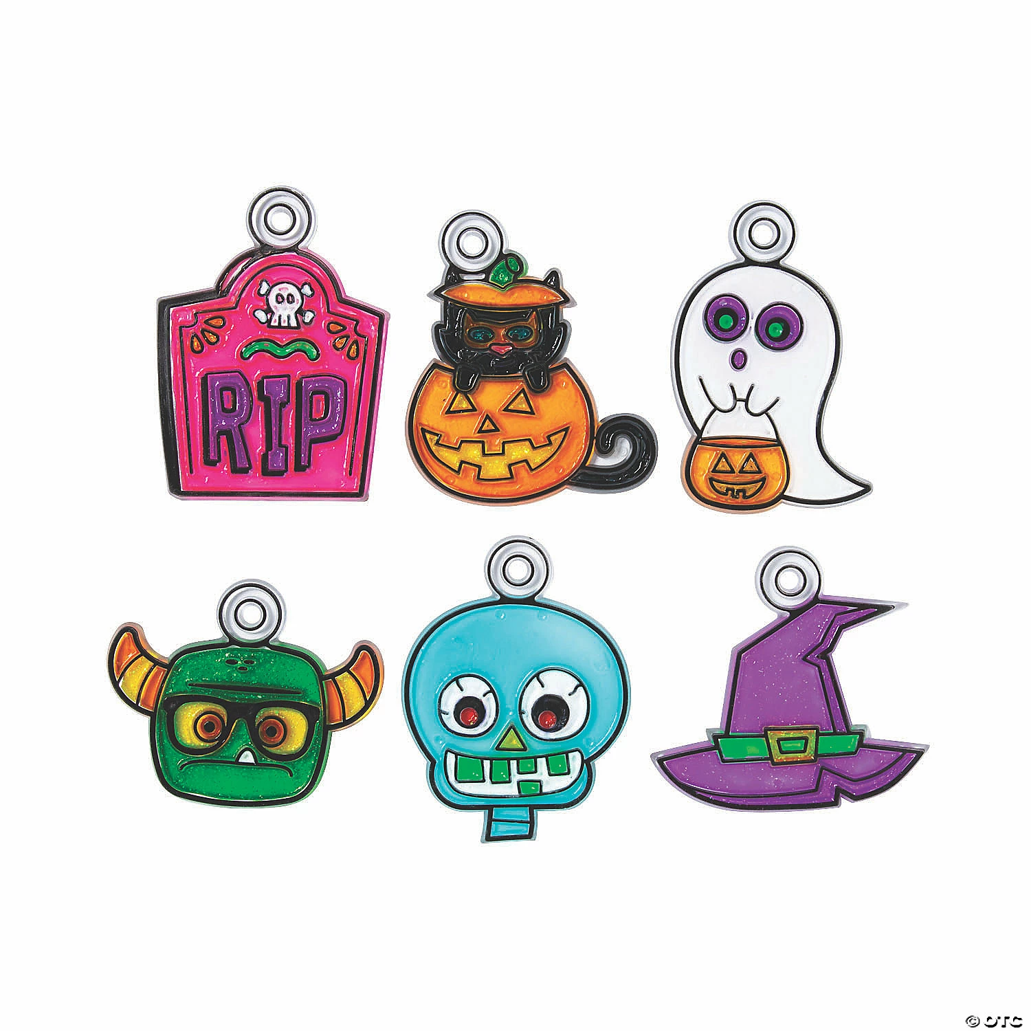 Hereโs a Halloween craft that kids will love! Featuring silly Halloween shapes and characters, these suncatchers will be BOO-tiful after kids color them with their own markers. A great Halloween classroom activity or Halloween party activity for kids, these suncatchers are also a good choice for a Harvest party activity table. We recommend using sun catcher paint or suncatcher paint pens, sold separately on this site. Plastic. (4 dozen per unit) 2 1/2″ – 3 1/2″ ยฉ OTC